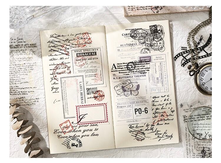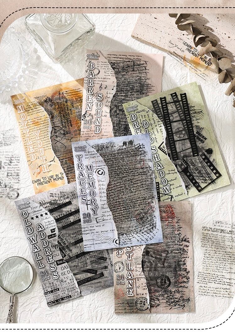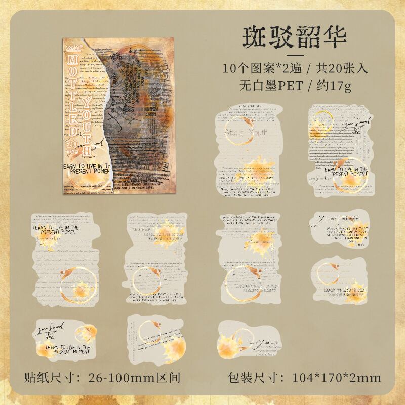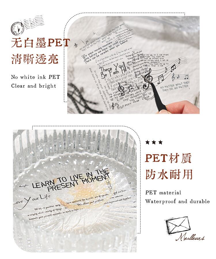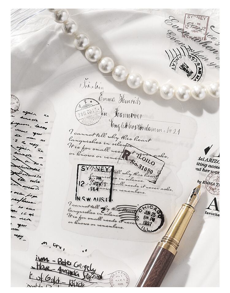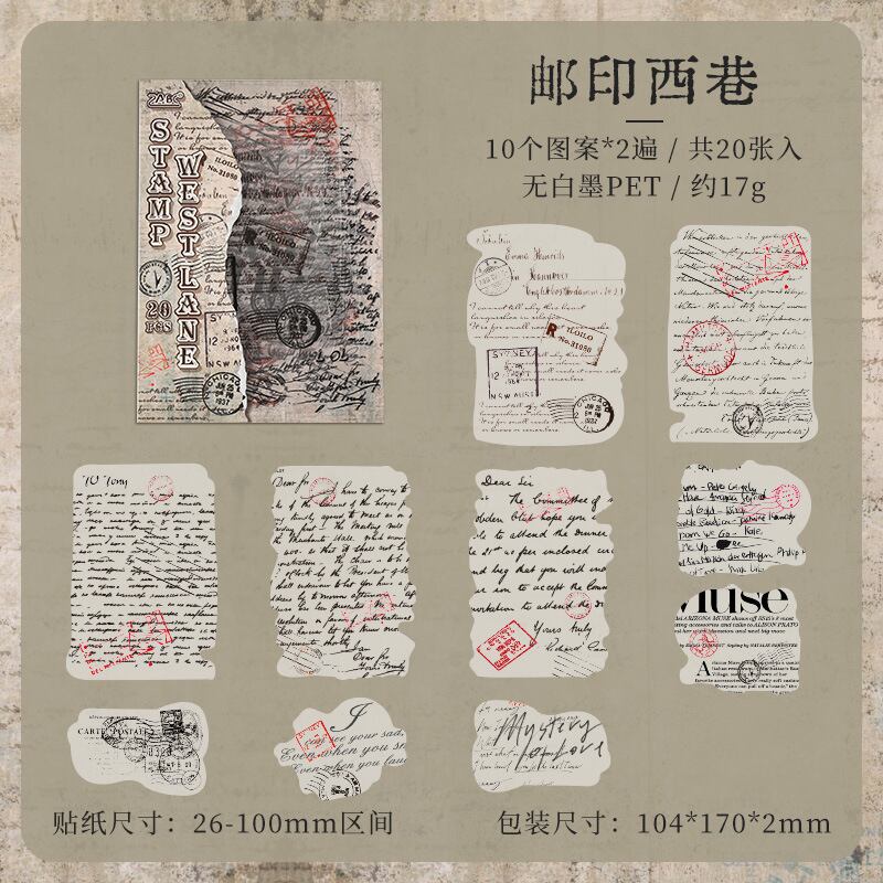 文字無白墨PETシール旧影余夢シリーズ20枚レトロ英語
