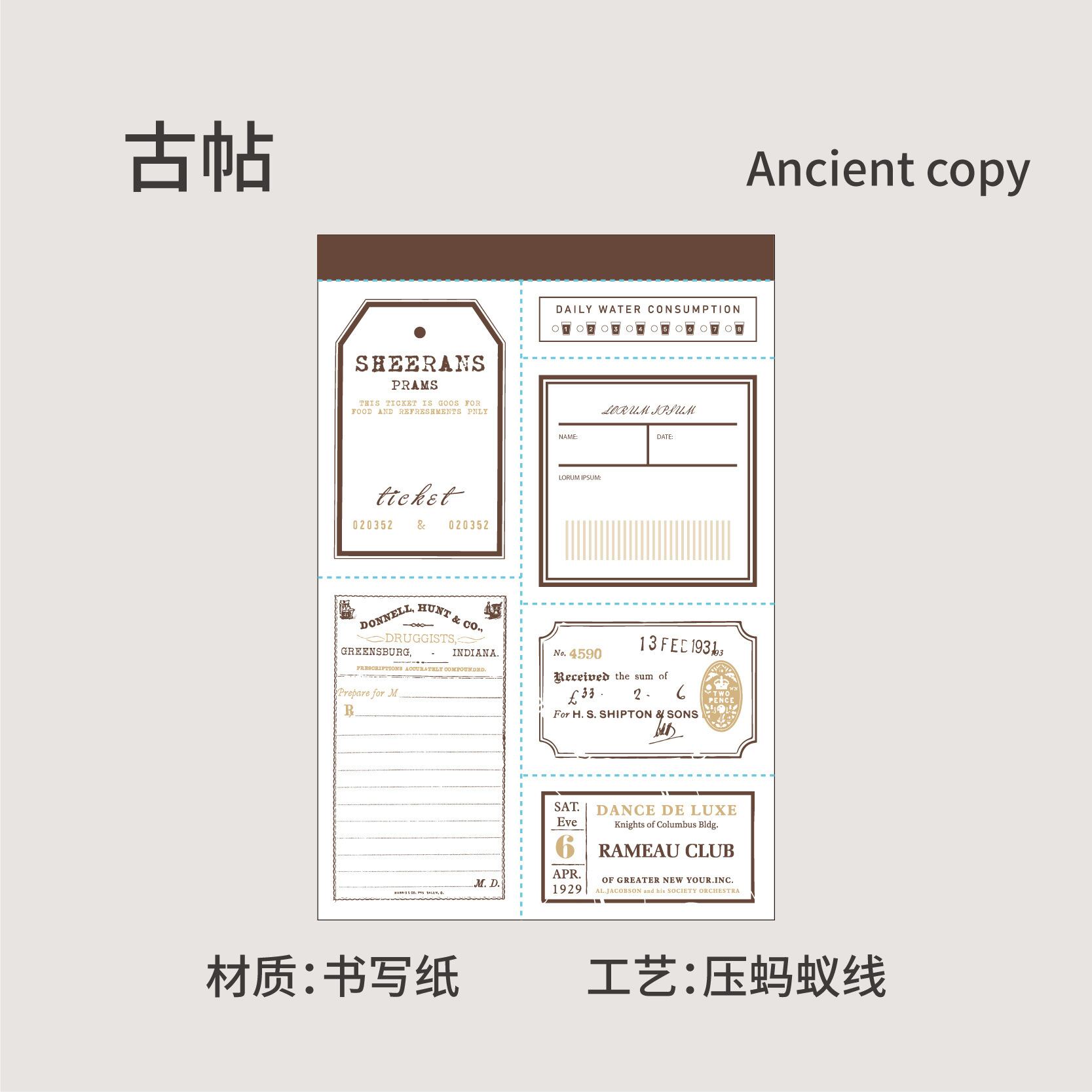 ちぎれるメモ帳 レターシリーズ ベーシックノート コラージュライティング原紙 6種類 30枚