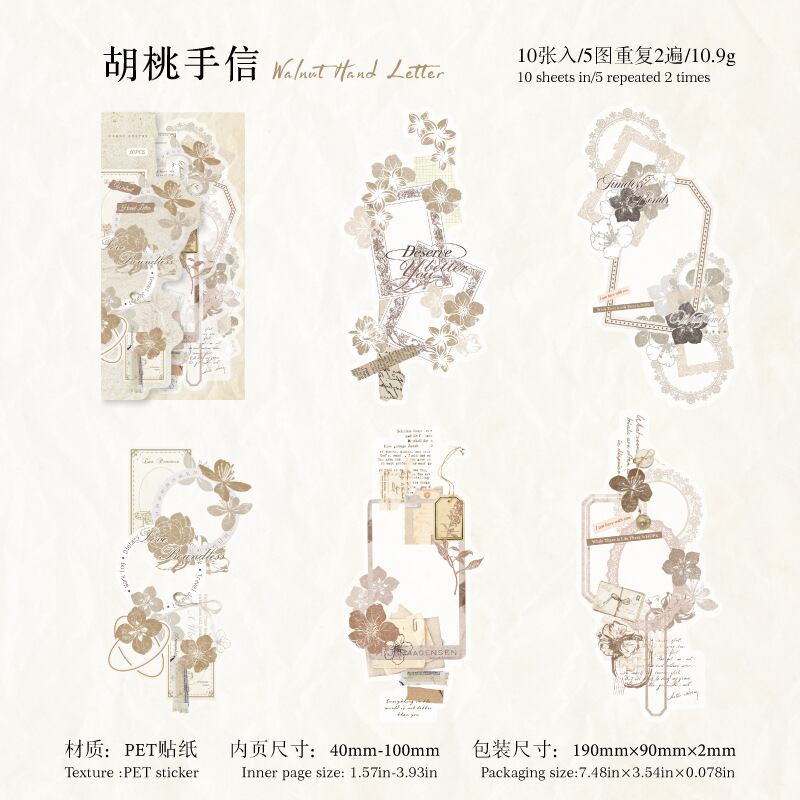 PET ロングホワイトインクステッカーパック - Love Intertwined シリーズハンドブック DIY レトロ装飾ベースコラージュ 6 スタイル