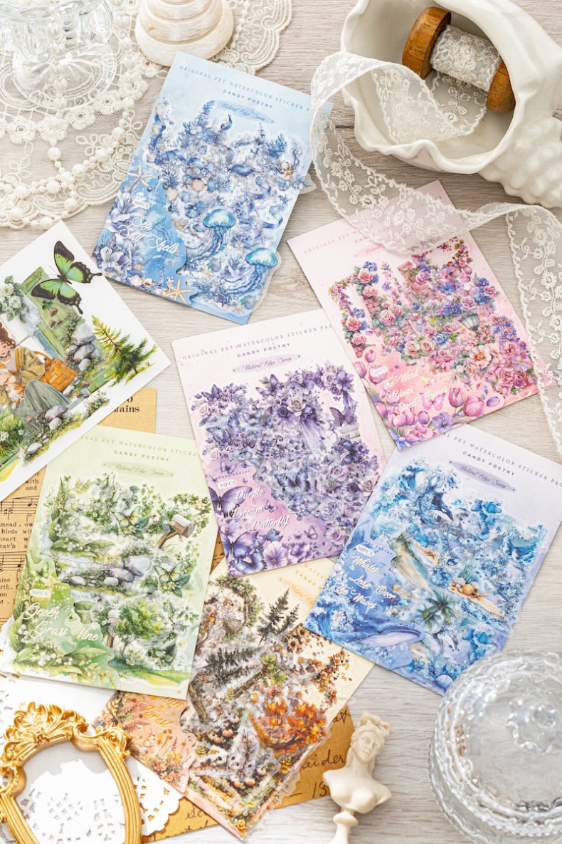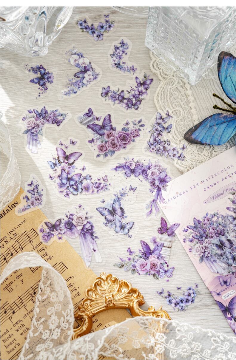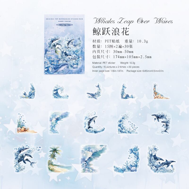 PET 白インクステッカーパックナチュラルコーナーシリーズハンドアカウント素材コラージュヨーロピアンスタイルベース装飾 30 枚 6 スタイル