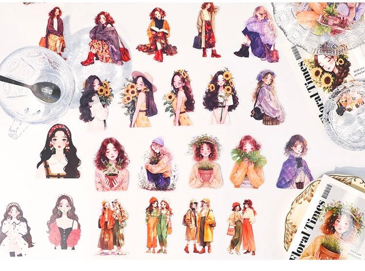 PETステッカーパックFlowery Yearsシリーズ30キャラクターと女の子の風景テーマステッカー6種類