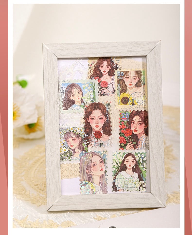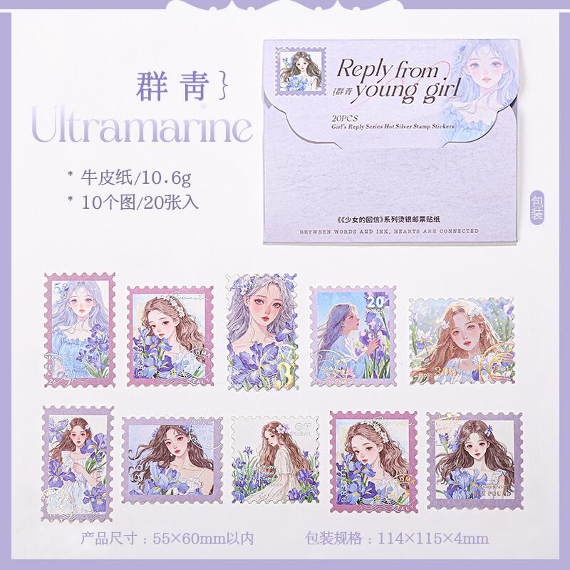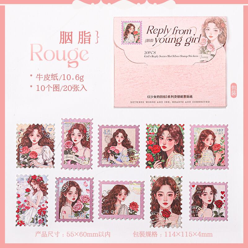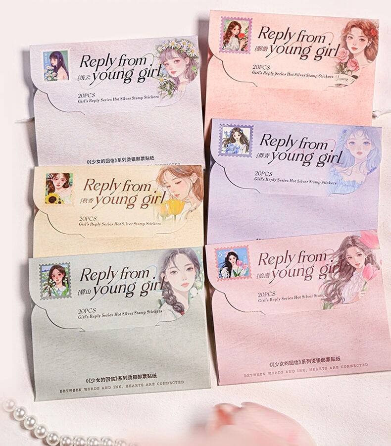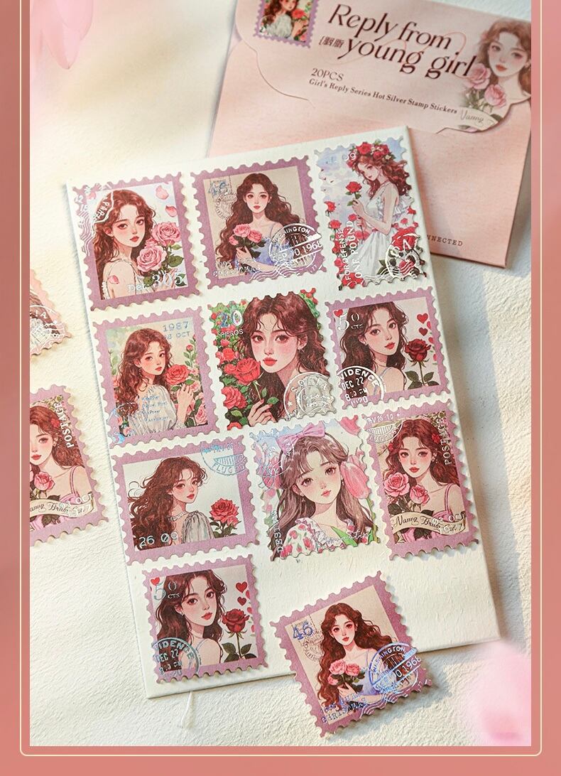 少女の銀の切手のシールの少女の返信シリーズの6種類
