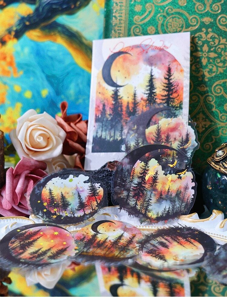 森林PETステッカーパック霧シリーズファンタジー夜景テーマ