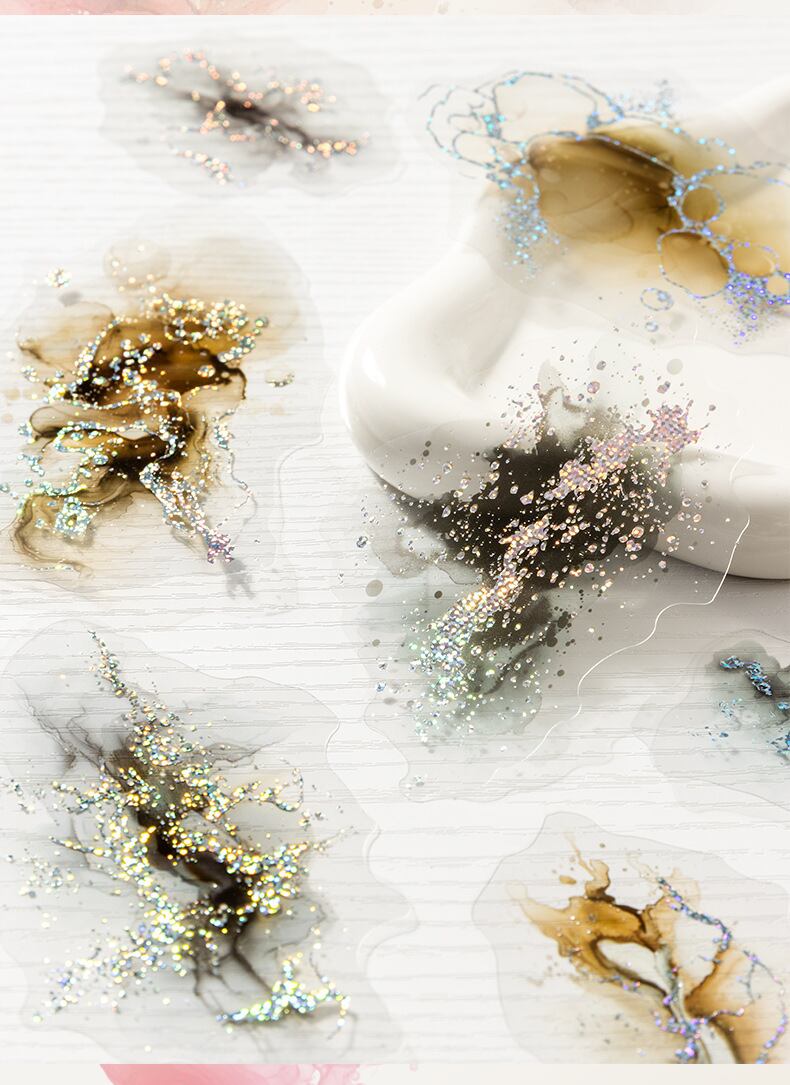 ゴールドカラーシリーズ ホットシルバー水彩ブルーミングステッカーパック ハンドブックデコレーションコラージュ 6種類