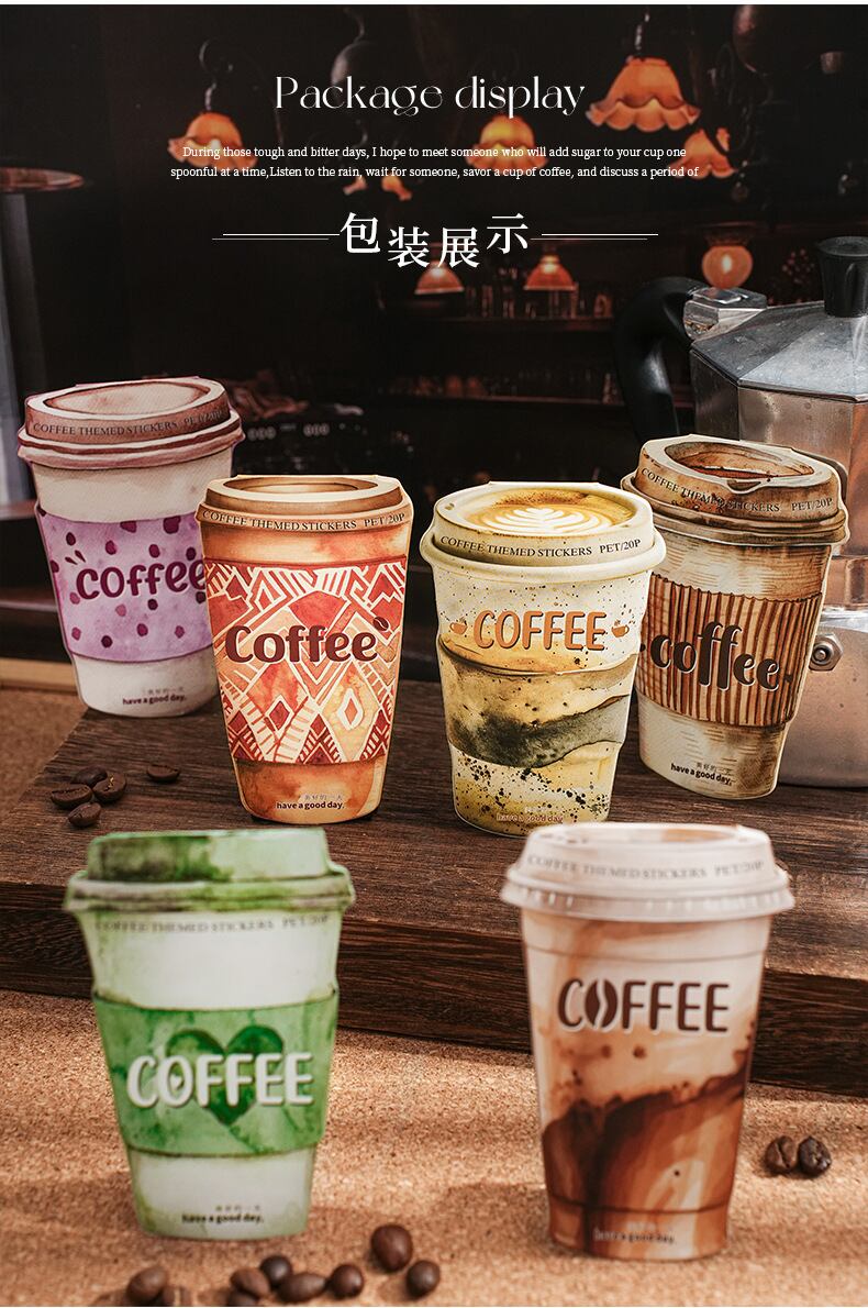 グッドデイ PET ステッカーパック コーヒーカラーシリーズ 20 枚 コーヒートレースインクテーマ DIY 6 スタイル