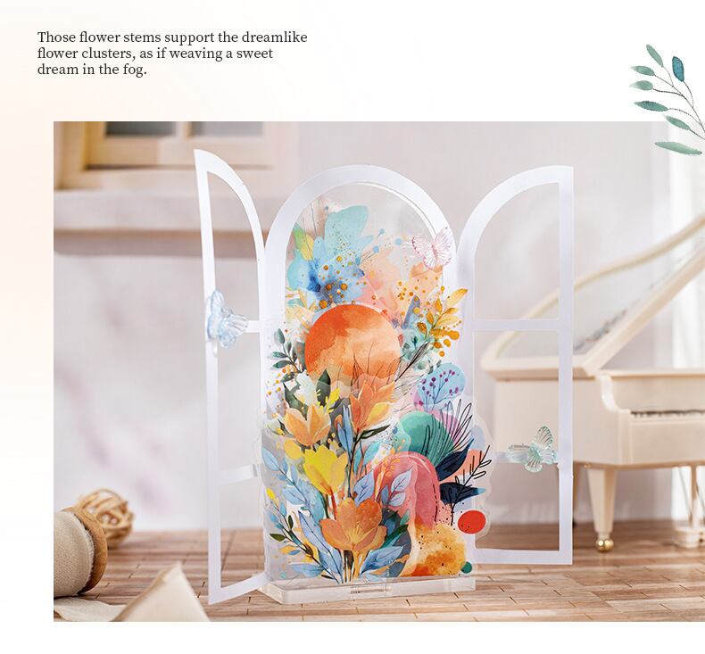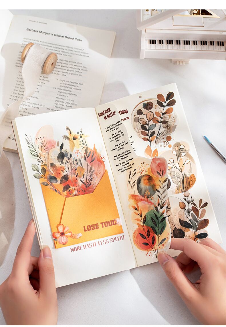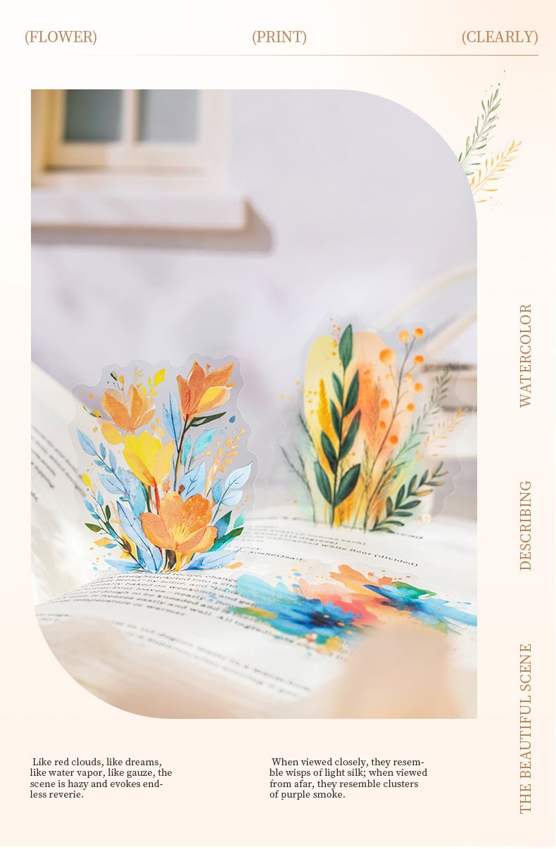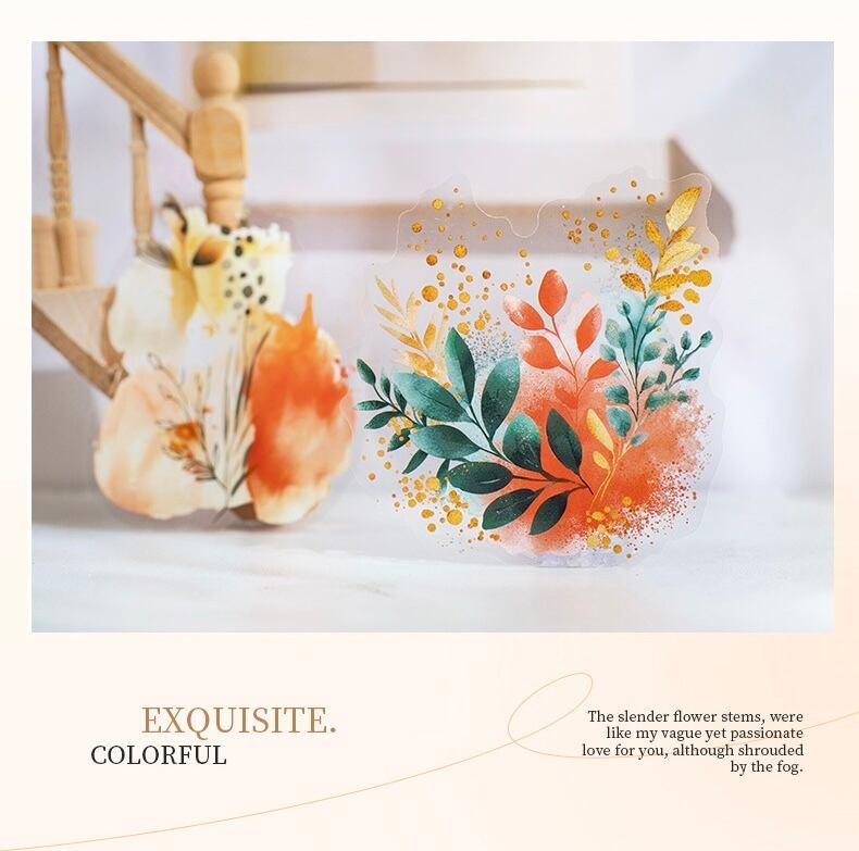 霧色 花茎シリーズ 水彩 PET ステッカー 植物素材 装飾コラージュ 6種類