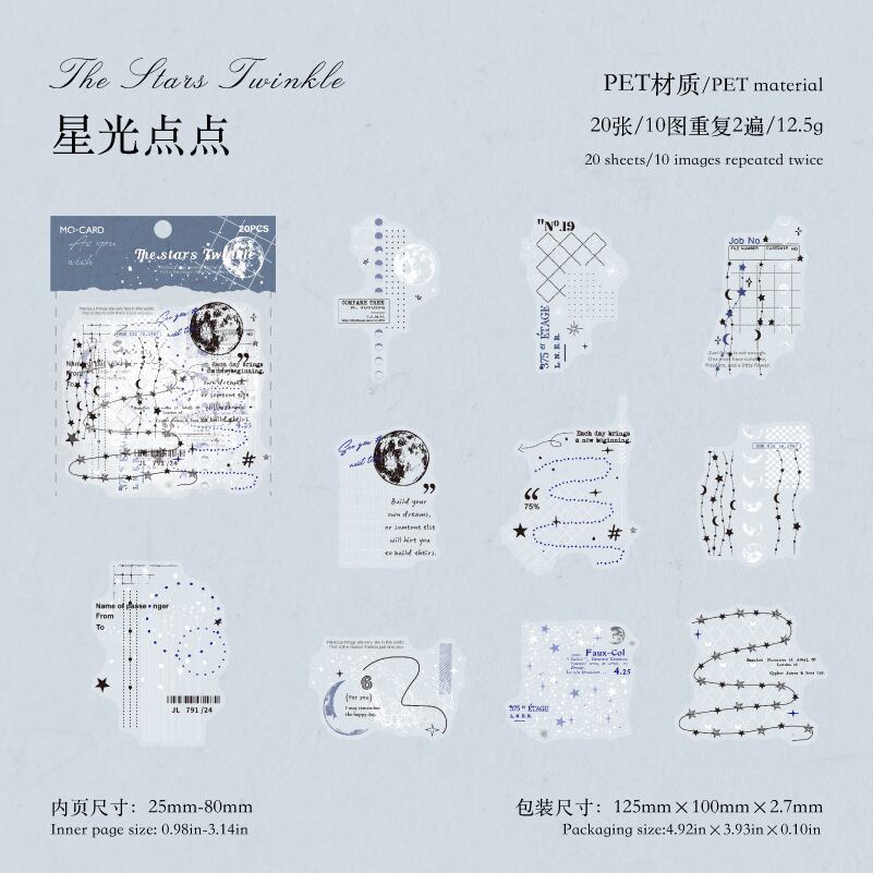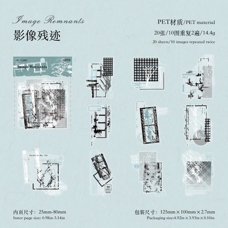 PETステッカーパック かすみトレースシリーズ レトロノートデコレーション素材ステッカー DIY 20枚入り 全6種類