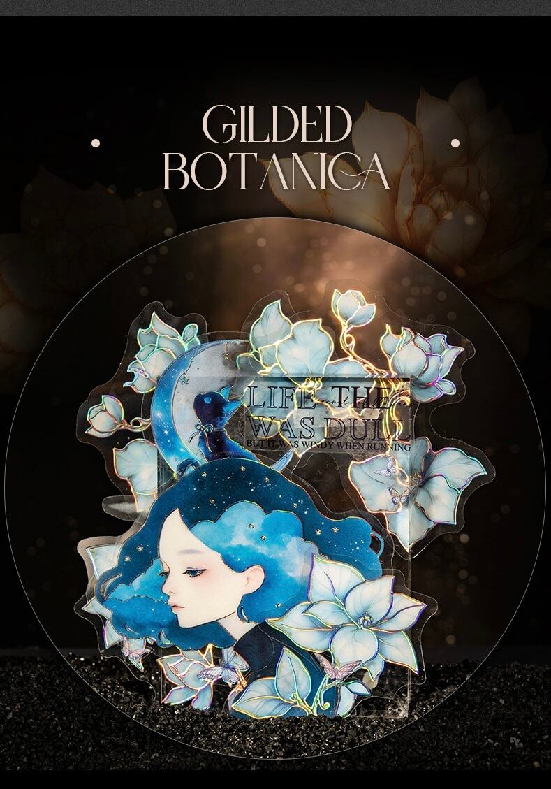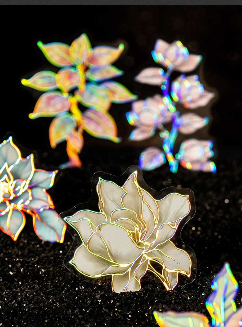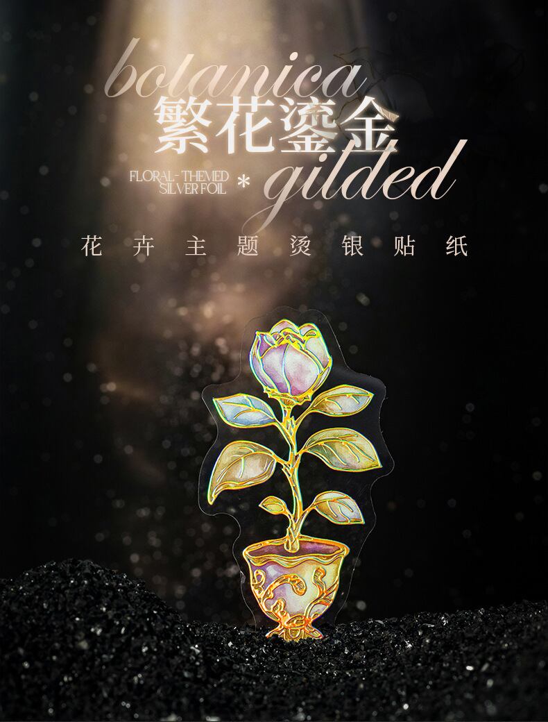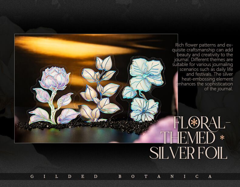 フローラル ギルデッド シリーズ: ノート装飾用の花柄シルバーホットPETステッカー6枚