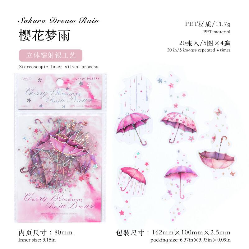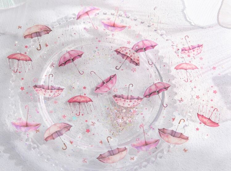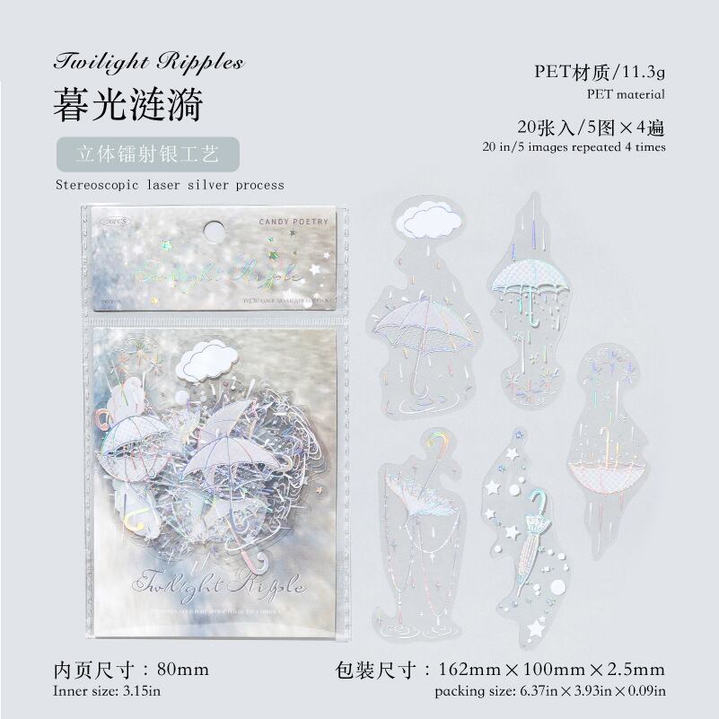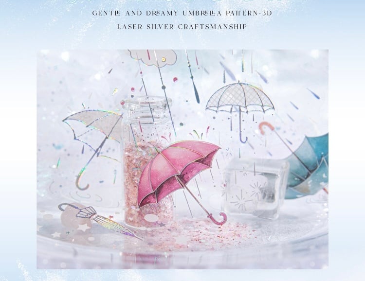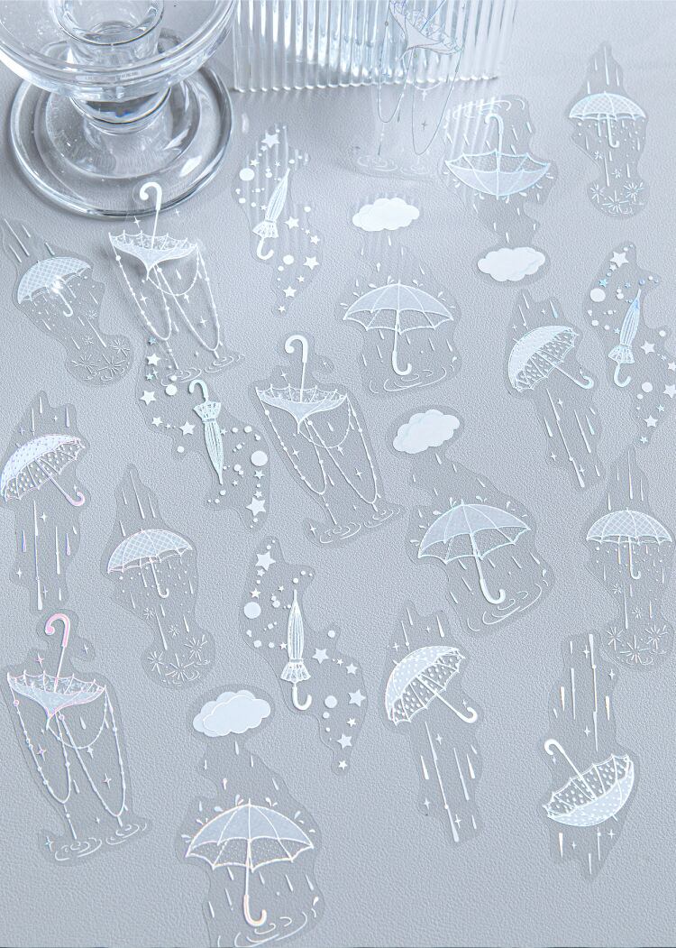 PET 3Dレーザーシルバーホワイトインクステッカーパック 梅雨シリーズ 傘テーマベースデコレーション DIY