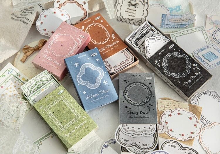特殊紙 活版エンボス加工 マッチ箱型付箋 - サイレントデザートアイランドシリーズ レトロヨーロピアンインテリア (6スタイル)