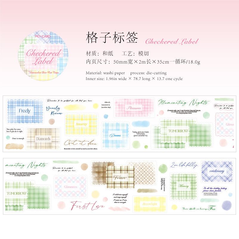 和紙ダイカットテープ、カラフルな市松模様シリーズ、レトロなノートコラージュデコレーション素材6点