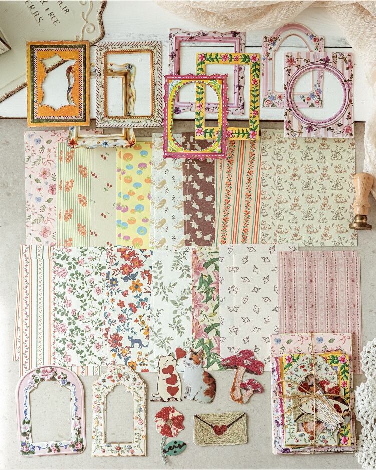 混合素材レリーフレリーフ素材パックガーデン郵便局シリーズレトロノートコラージュデコレーション4スタイル