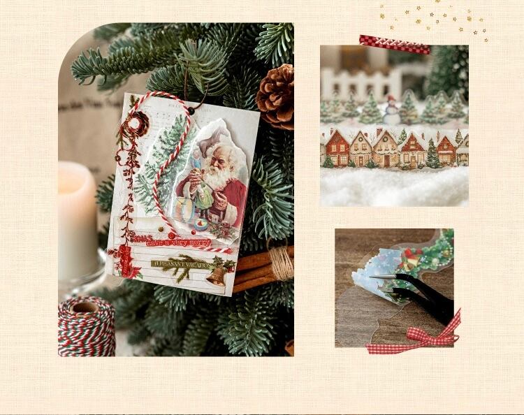PETロングホワイトインクステッカーパックエンカウンタークリスマスシリーズレトロクリスマスプル素材4種類