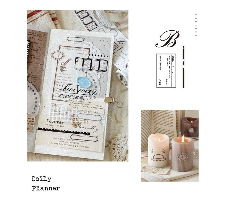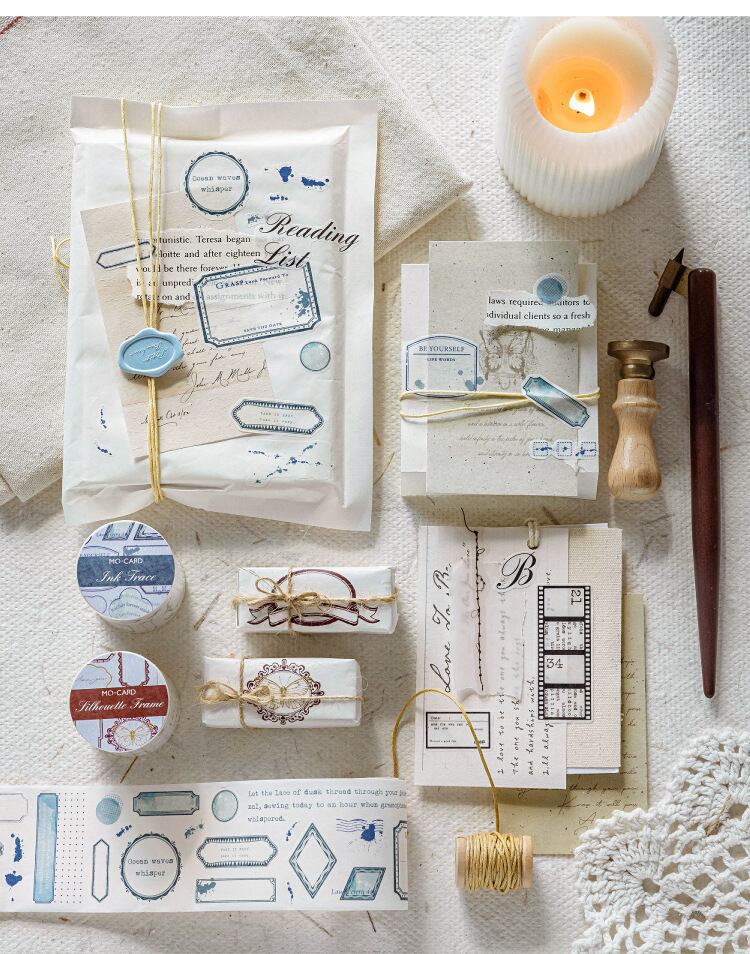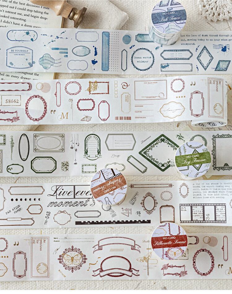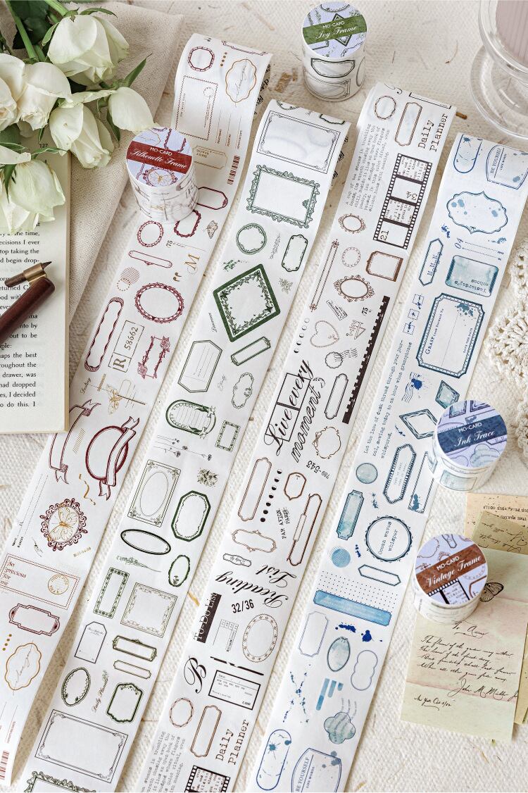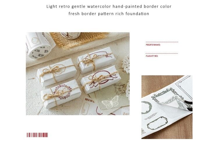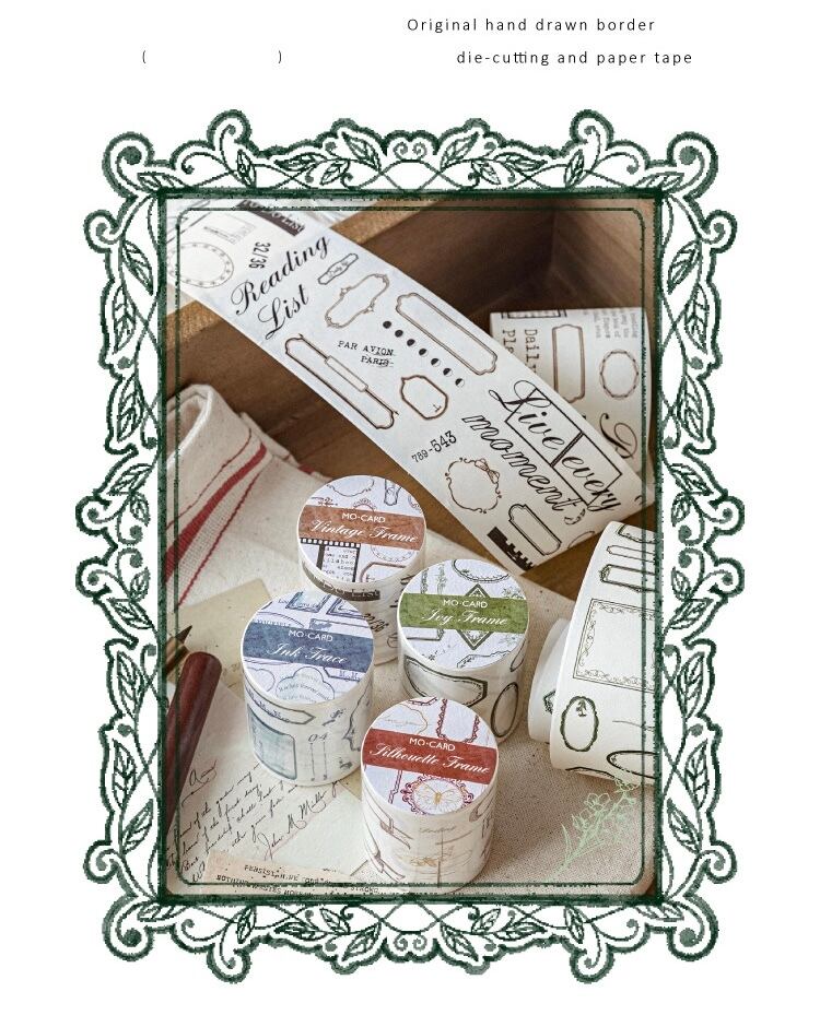 ダイカットテープの無地フレームシリーズ 軽やかでレトロな優しい水彩手描きのフレーム素材4