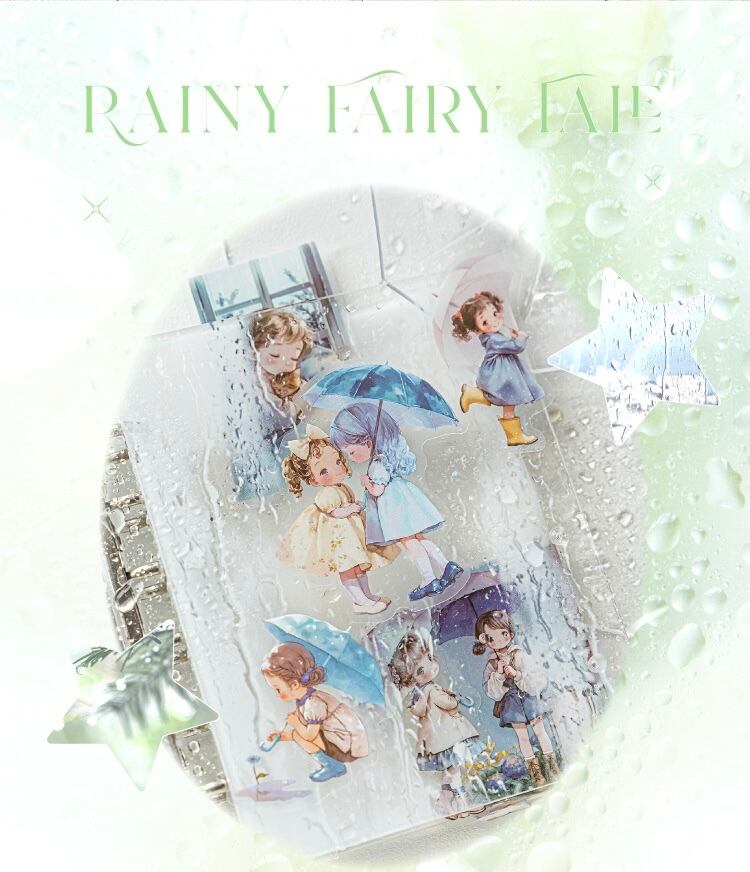 マットPETホワイトインクステッカーパック梅雨のおとぎ話シリーズかわいいキャラクターテーマ新鮮な装飾4種類