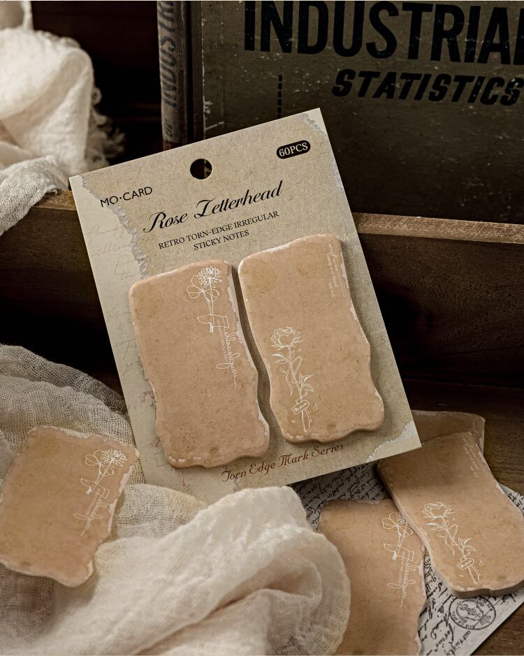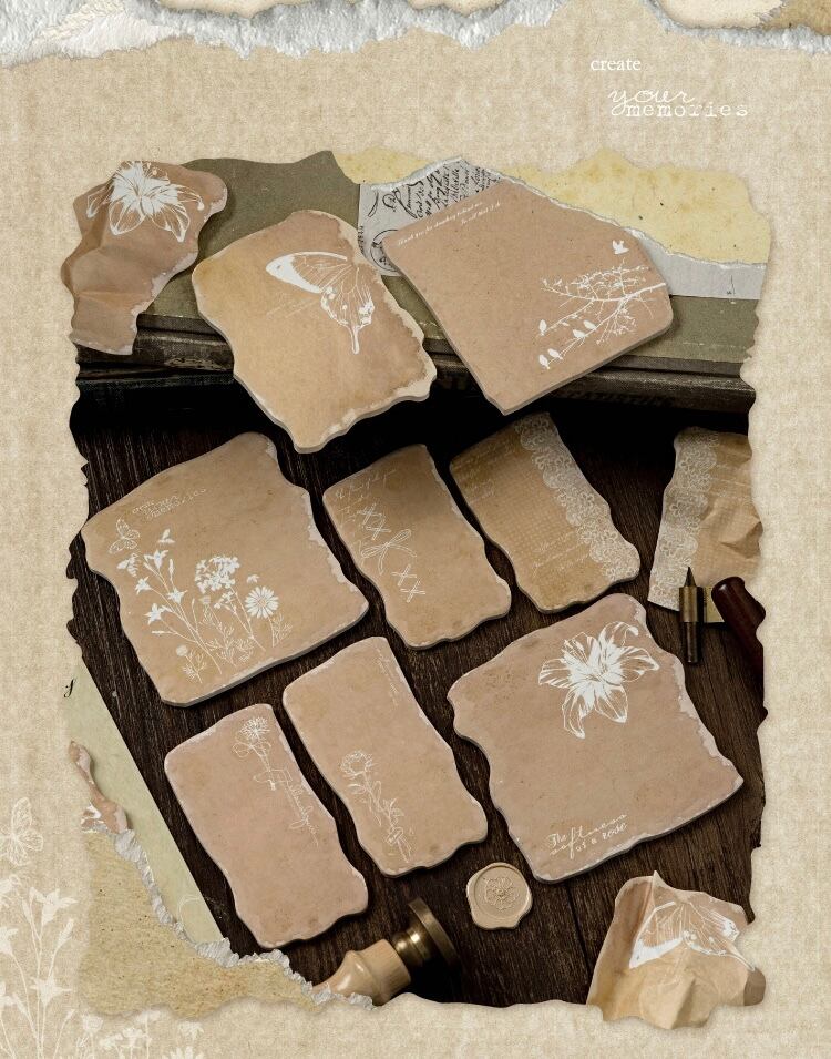 スーパーホワイトクラフト紙型付箋 破れエッジ 印刷シリーズ レトロコラージュノート素材 6