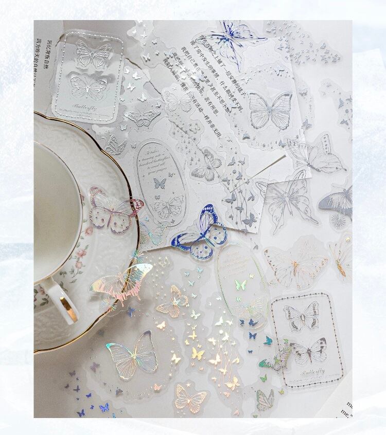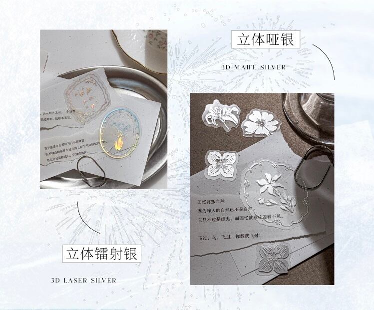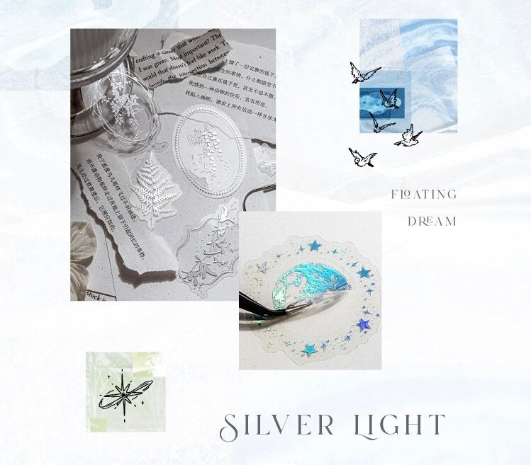PET 3Dホットスタンプシルバーステッカーパック シルバードリームシリーズ オリジナル文芸素材 レトロ装飾 6種類
