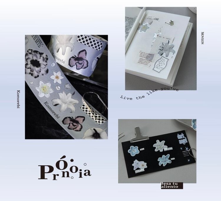 マットシルバーダイカットテープ 花言葉は続くシリーズinsスタイル植物柄花飾り素材6