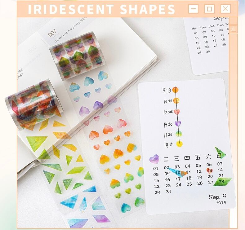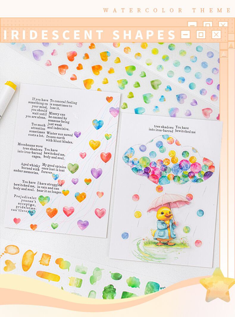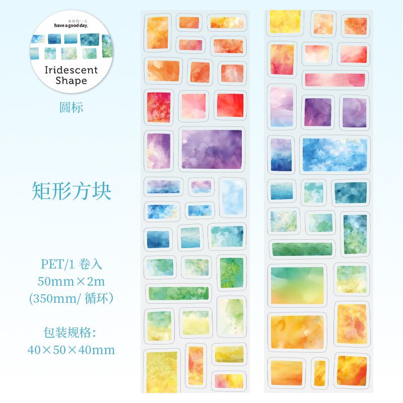 Magic Shapeシリーズ 水彩画テーマ PETステッカーロール ノートデコレーション素材