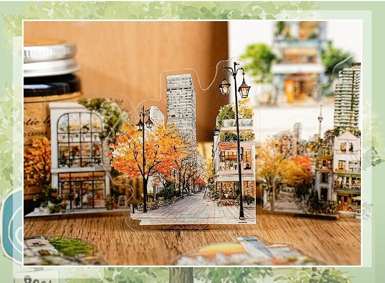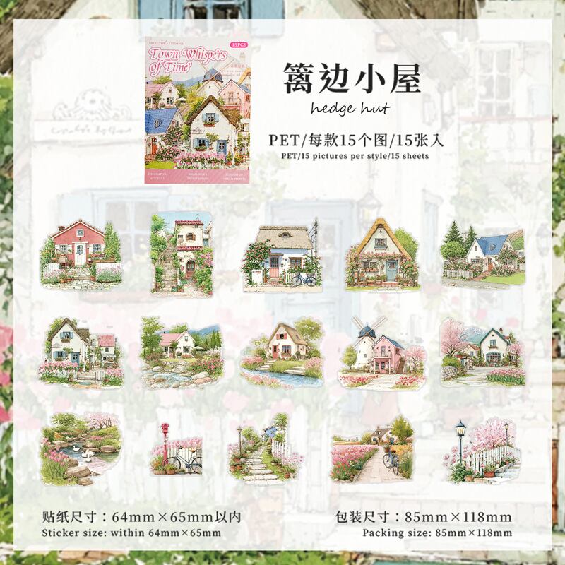 2171. PET ステッカーパック スモールタウンタイムシリーズ 15枚入り 6枚のレトロな家のテーマの造園ノートステッカー
