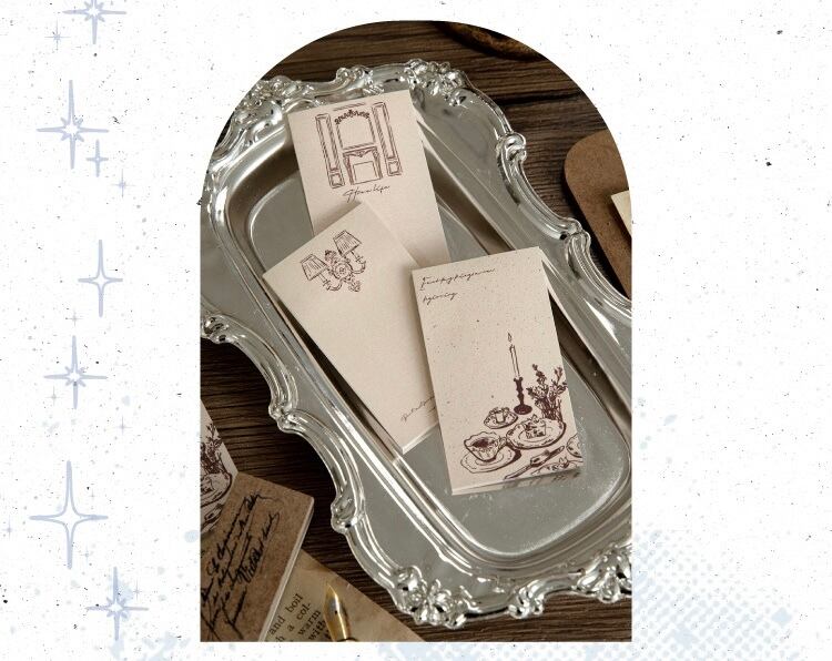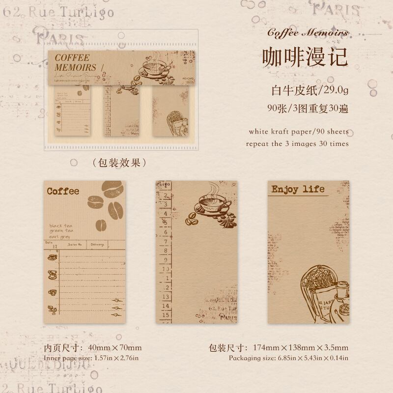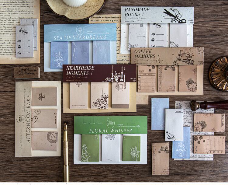 白クラフト紙多板付箋 ライフマークシリーズ レトロ装飾基材 6種類