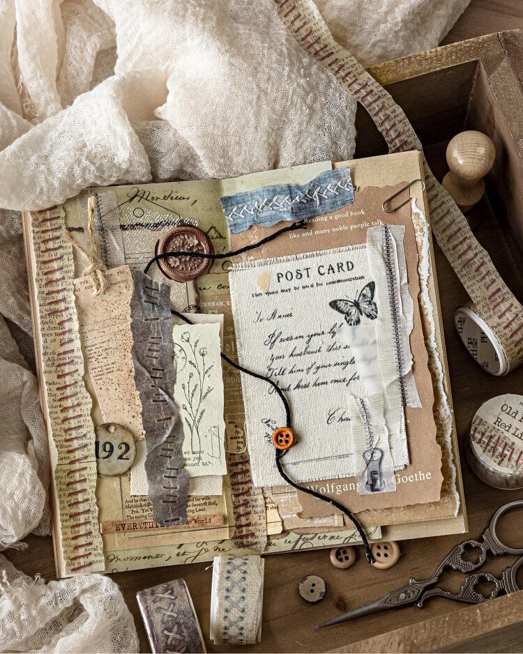 和紙型テープ、ちぎり縁縫いシリーズ、レトロなちぎり和紙テープ素材ベース6種類