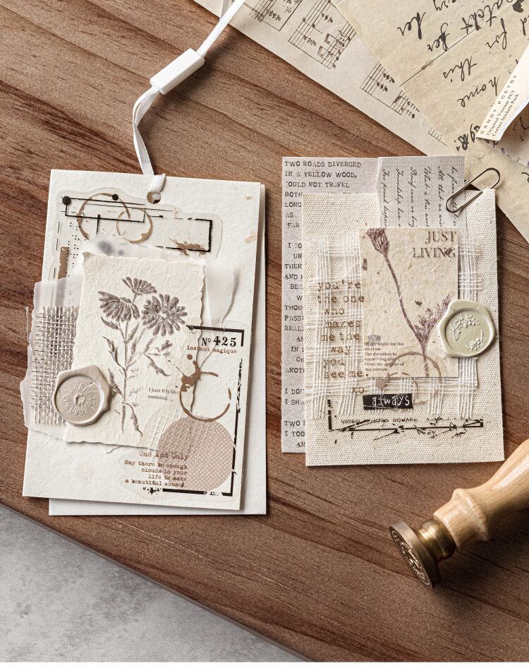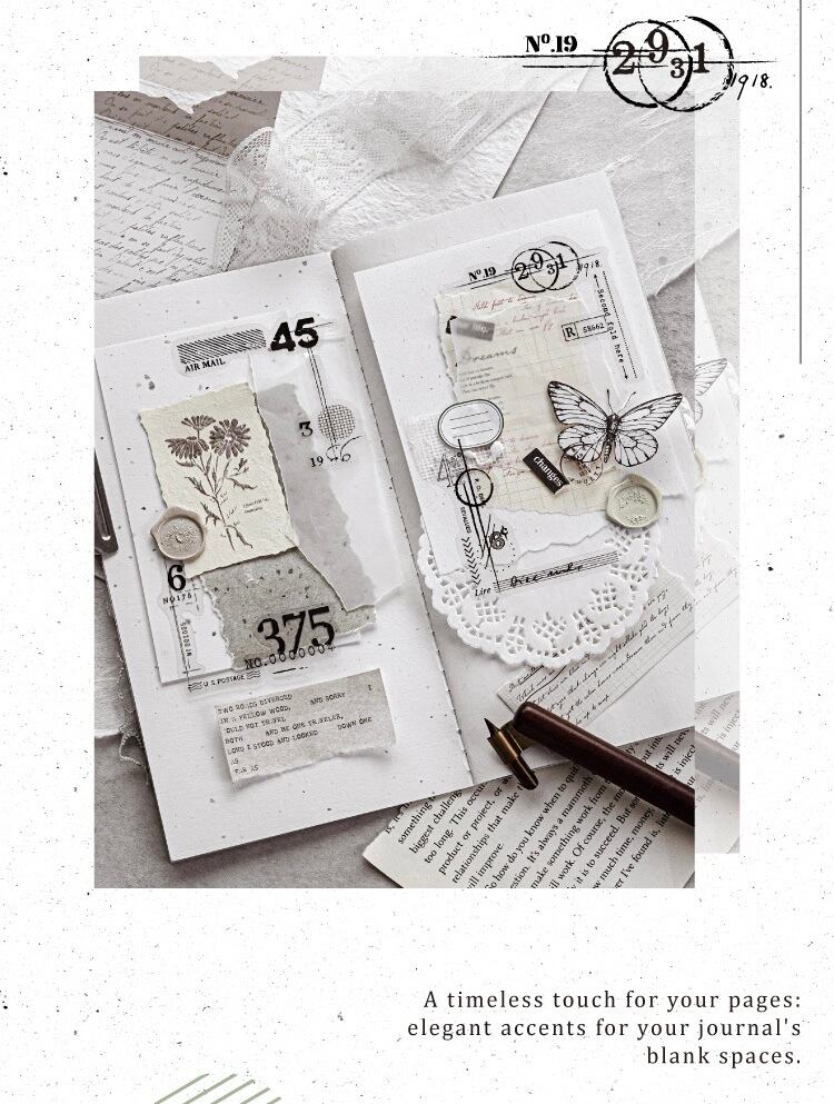PETホワイトインクステッカーパック タイムペーパーシリーズ オリジナルレトロ装飾素材 30枚入り