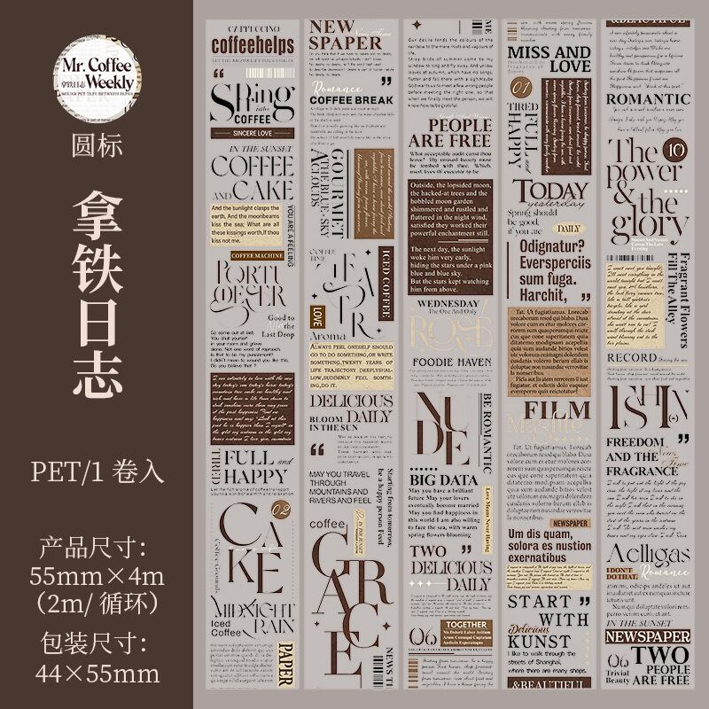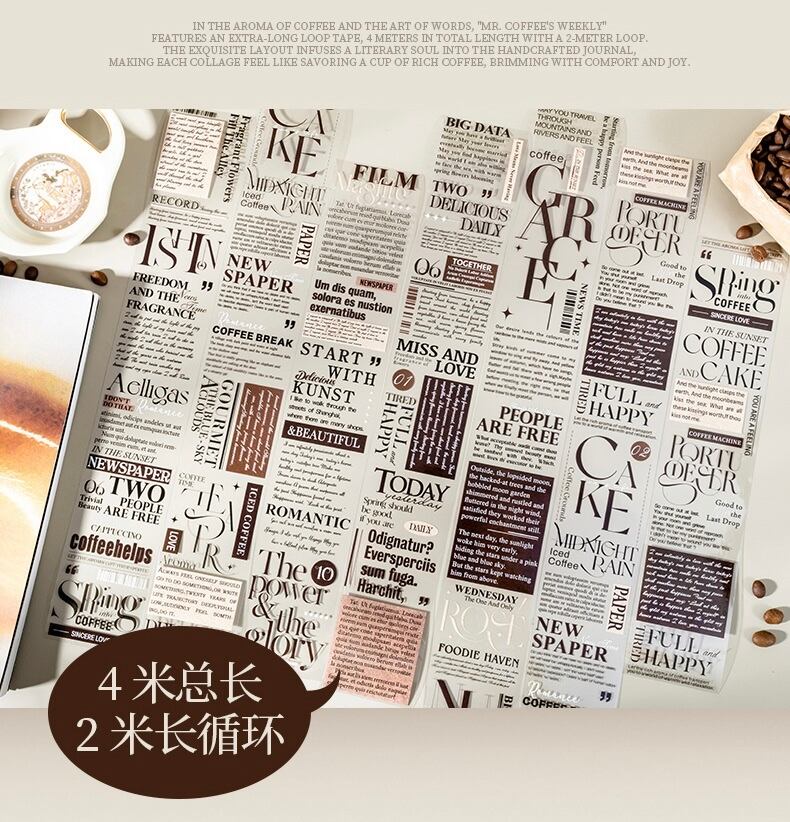 ミスターコーヒーの週刊シリーズ:コーヒーをテーマにした英語PETコラージュテープ(2種類)