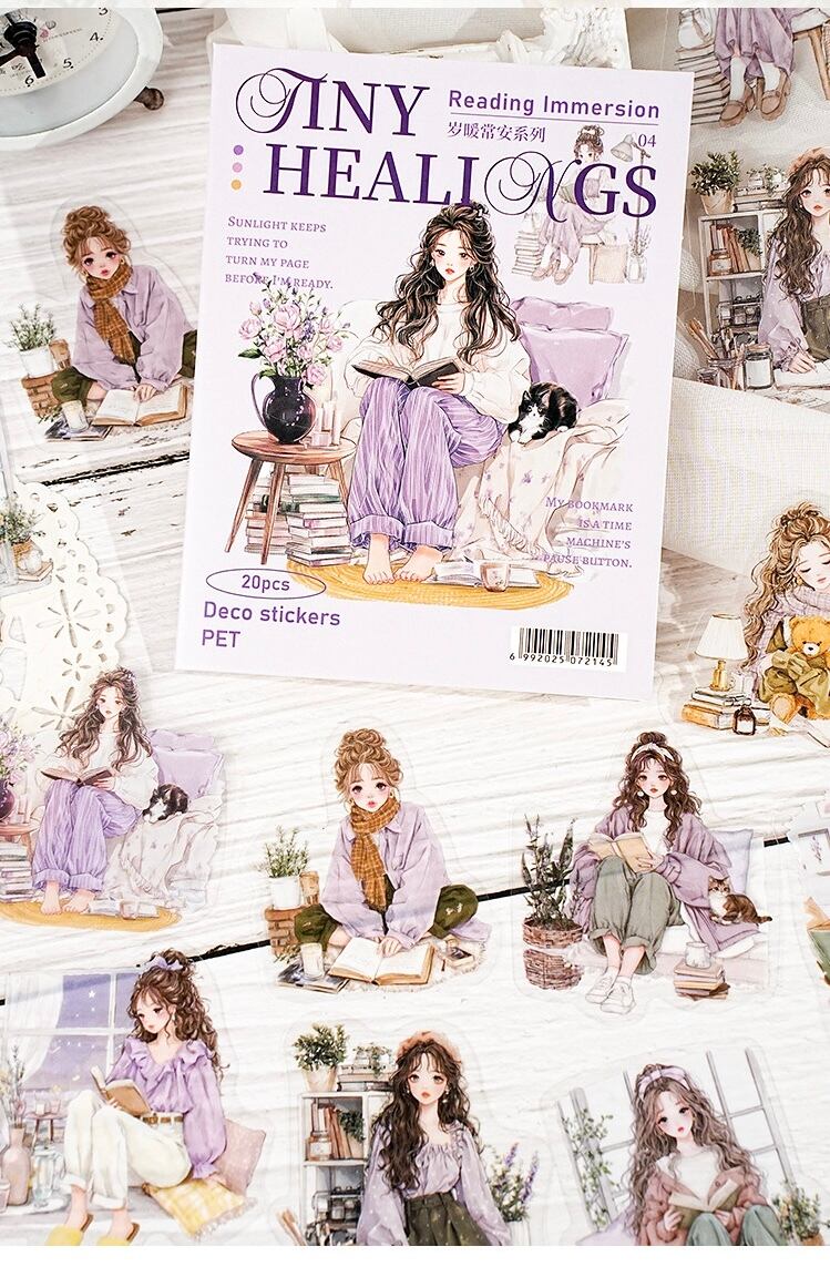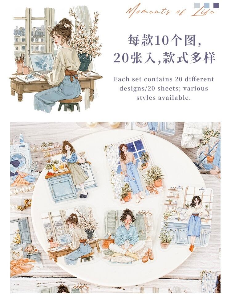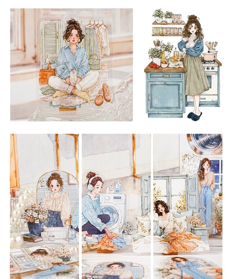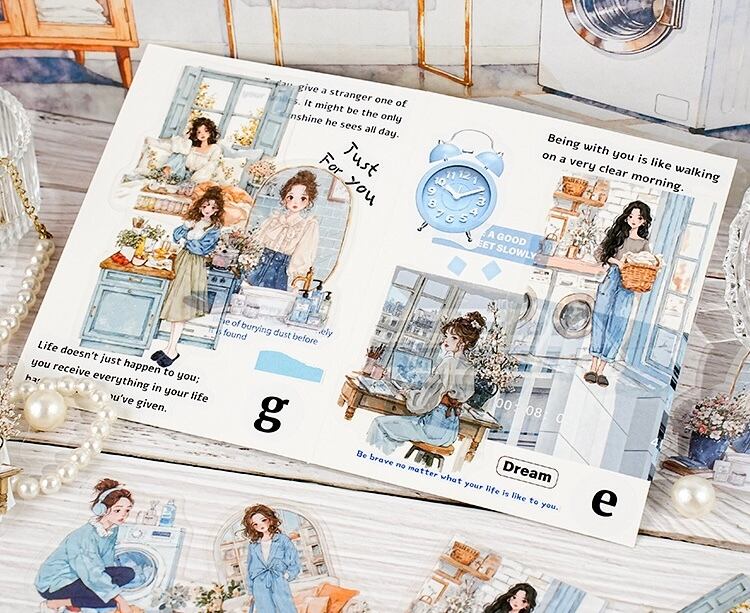 風景PETステッカーパック6種類、風景キャラクターコラージュ、ハンドブックデコレーション素材