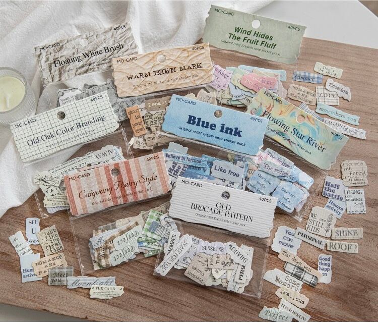 特殊紙活版エンボスステッカーと紙袋の破片シリーズ シンプルでレトロな英国風装飾素材8