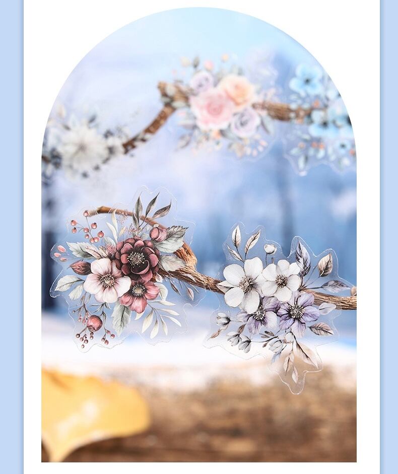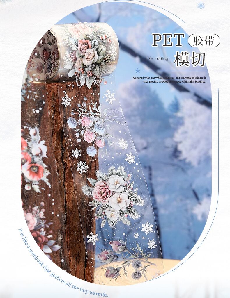 冬のPETダイカットテープ - 冬の花と海シリーズ:6つの基本的なジャーナリングベースデザイン