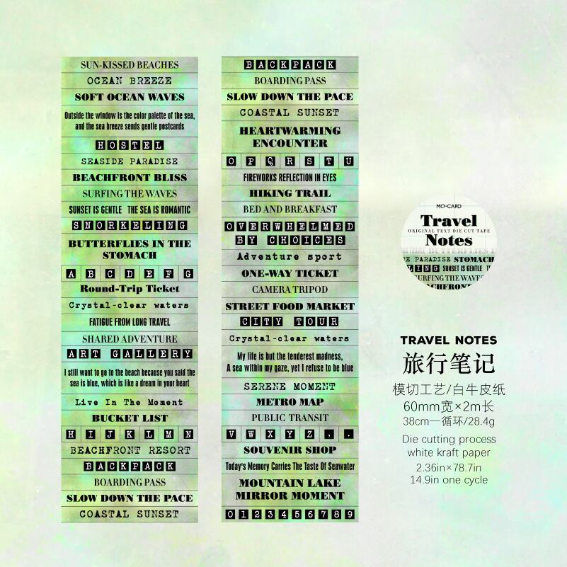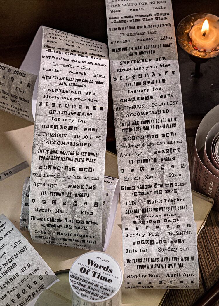 白クラフト紙ダイカットテープ、「Words of Time」シリーズ、英語テキストジャーナルデコレーション素材の6デザイン