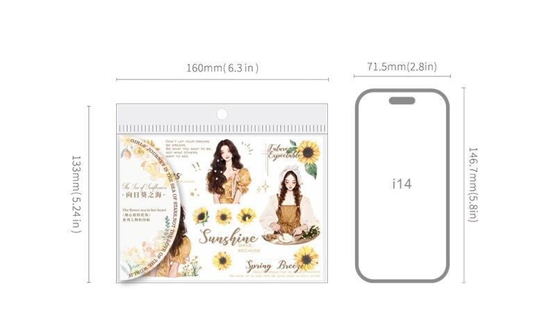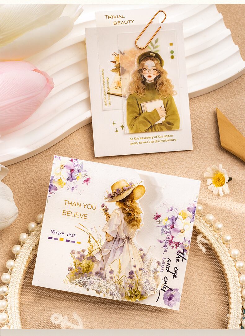 ステッカー:彼女の心の花海シリーズ - キャラクター転写によるレトロなハンドブックデコレーションコラージュ
