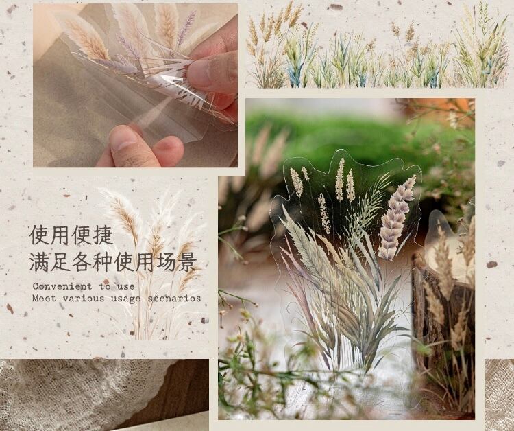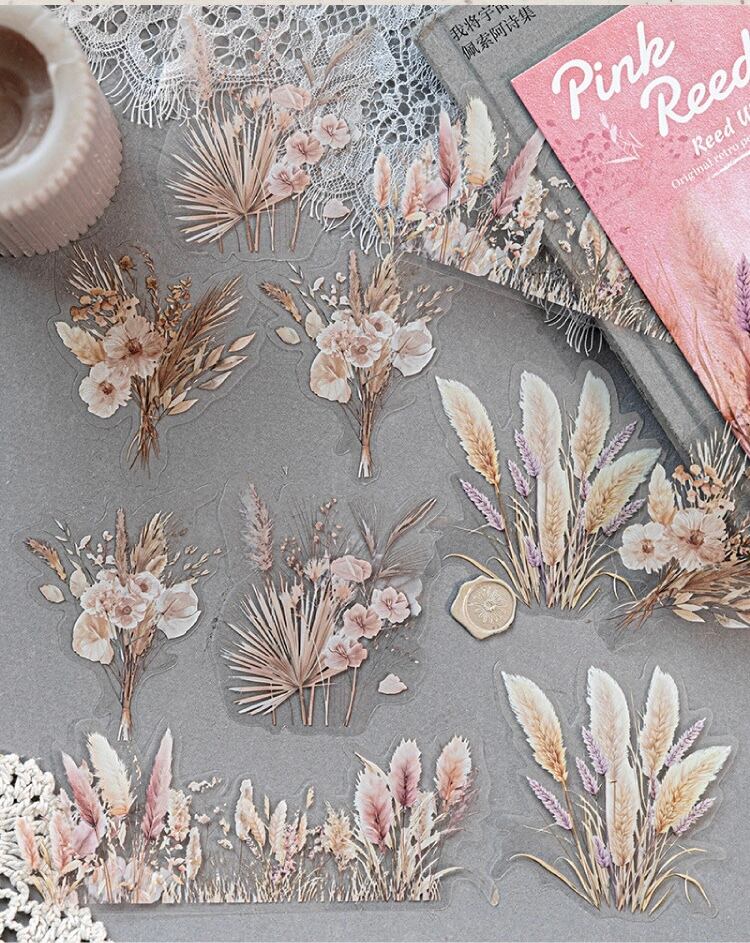 PETステッカーパック - 葦のささやきシリーズ(10枚) - 葦をテーマにしたジャーナリングベース素材とデコレーションステッカー