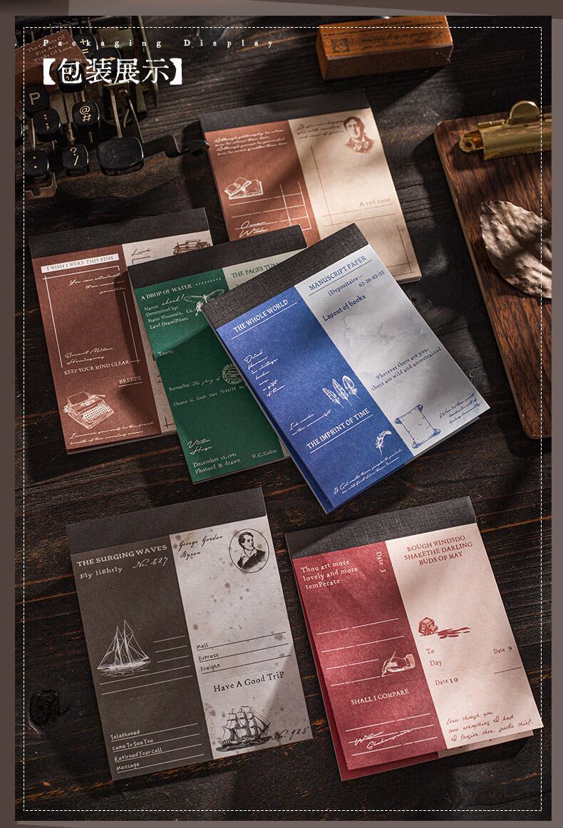 文芸マスターズジャーナルシリーズ:レトロな手綴じノートとコラージュ(6デザイン)