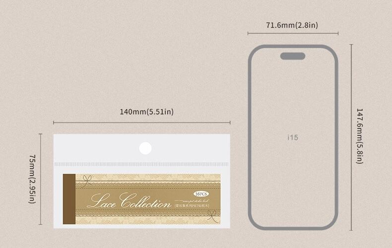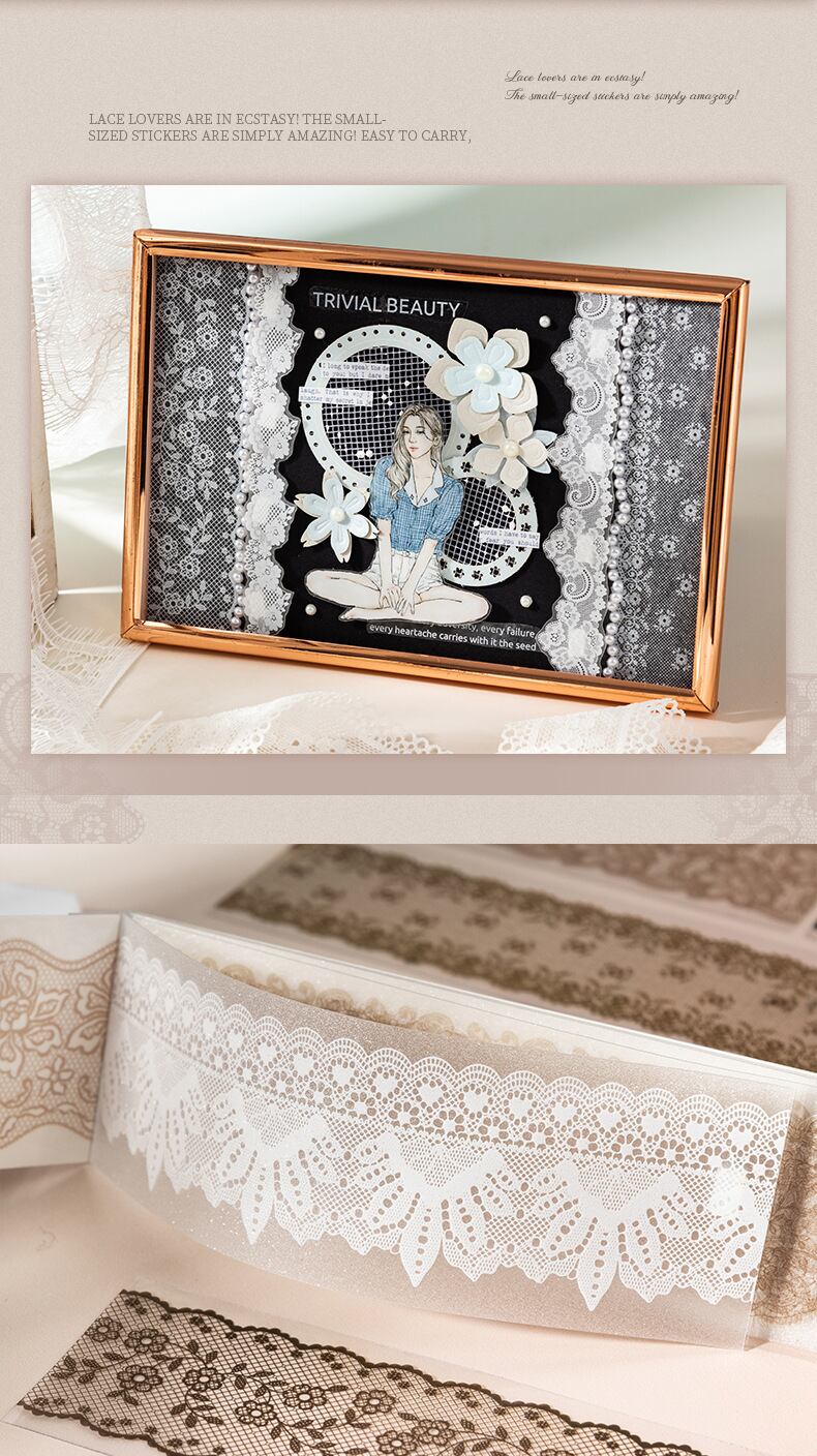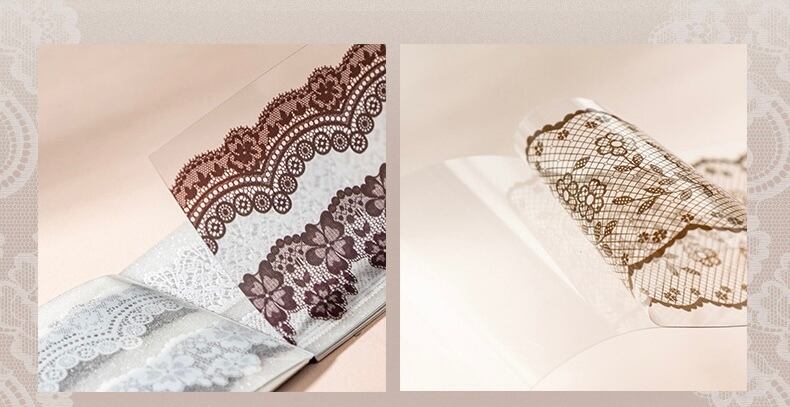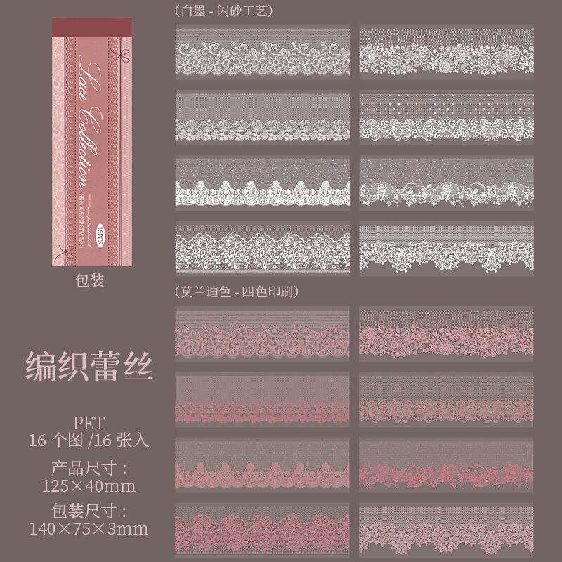 レーステーマPETステッカーブック、レースコレクションシリーズ、6デザイン、16シート、ベースコラージュ素材