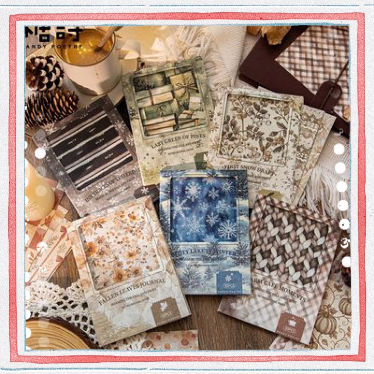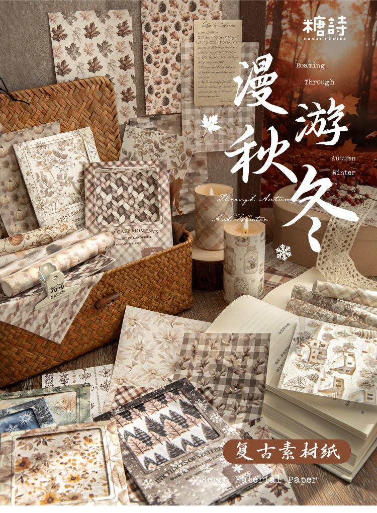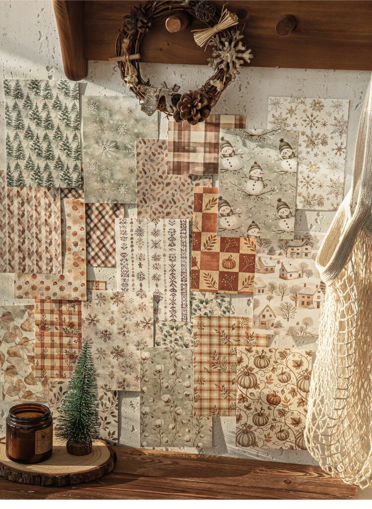 ホワイトクラフト紙 素材用紙 秋冬放浪シリーズ 冬をテーマにしたコラージュベース紙30枚