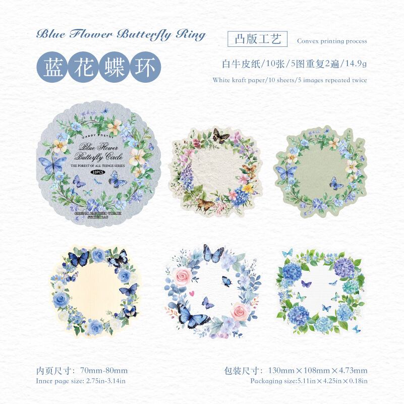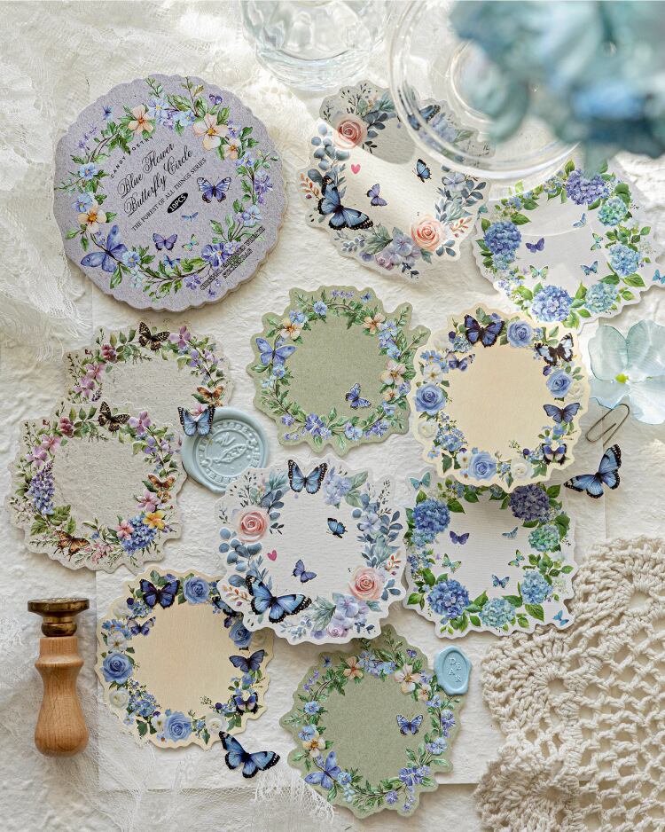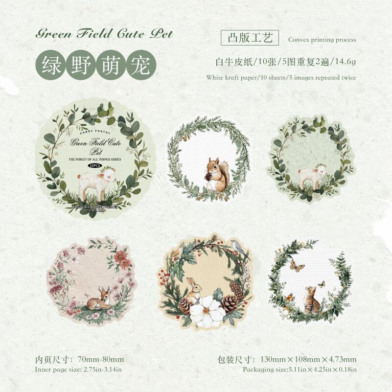 ホワイトクラフト紙 エンボス加工ステッカーパック - 森の万物シリーズ - レトロな花輪テーマのボーダー素材