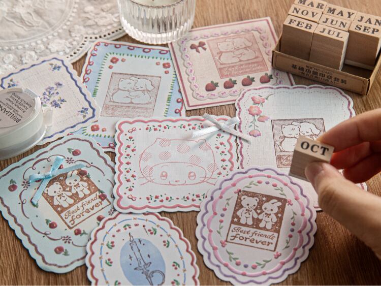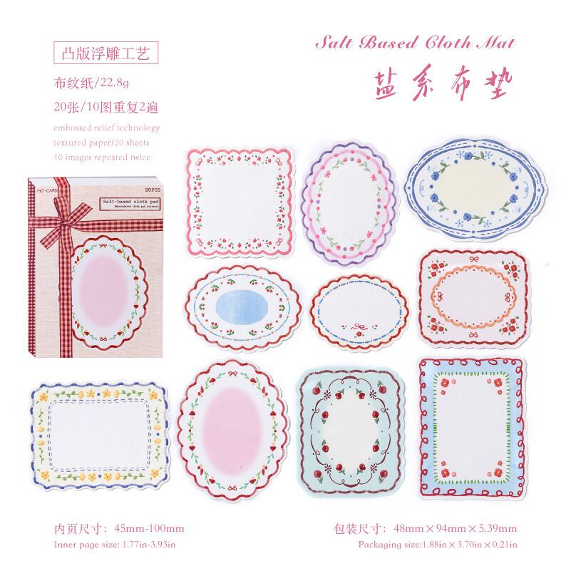 紙エンボスステッカー、ハンドメイドファブリックマットシリーズ、20枚、軽いレトロ素材紙