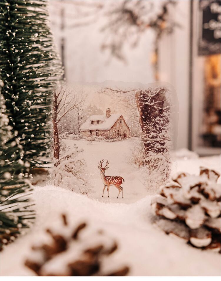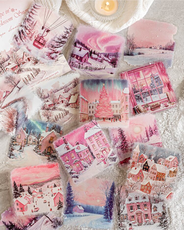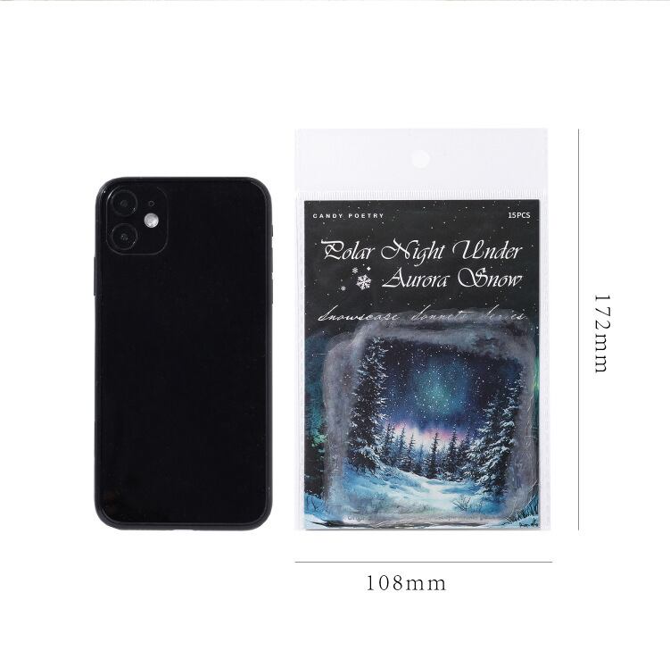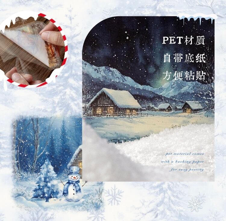 大型PET風景白インクステッカーパック - 雪景色詩シリーズ:冬の雪景色装飾素材6枚