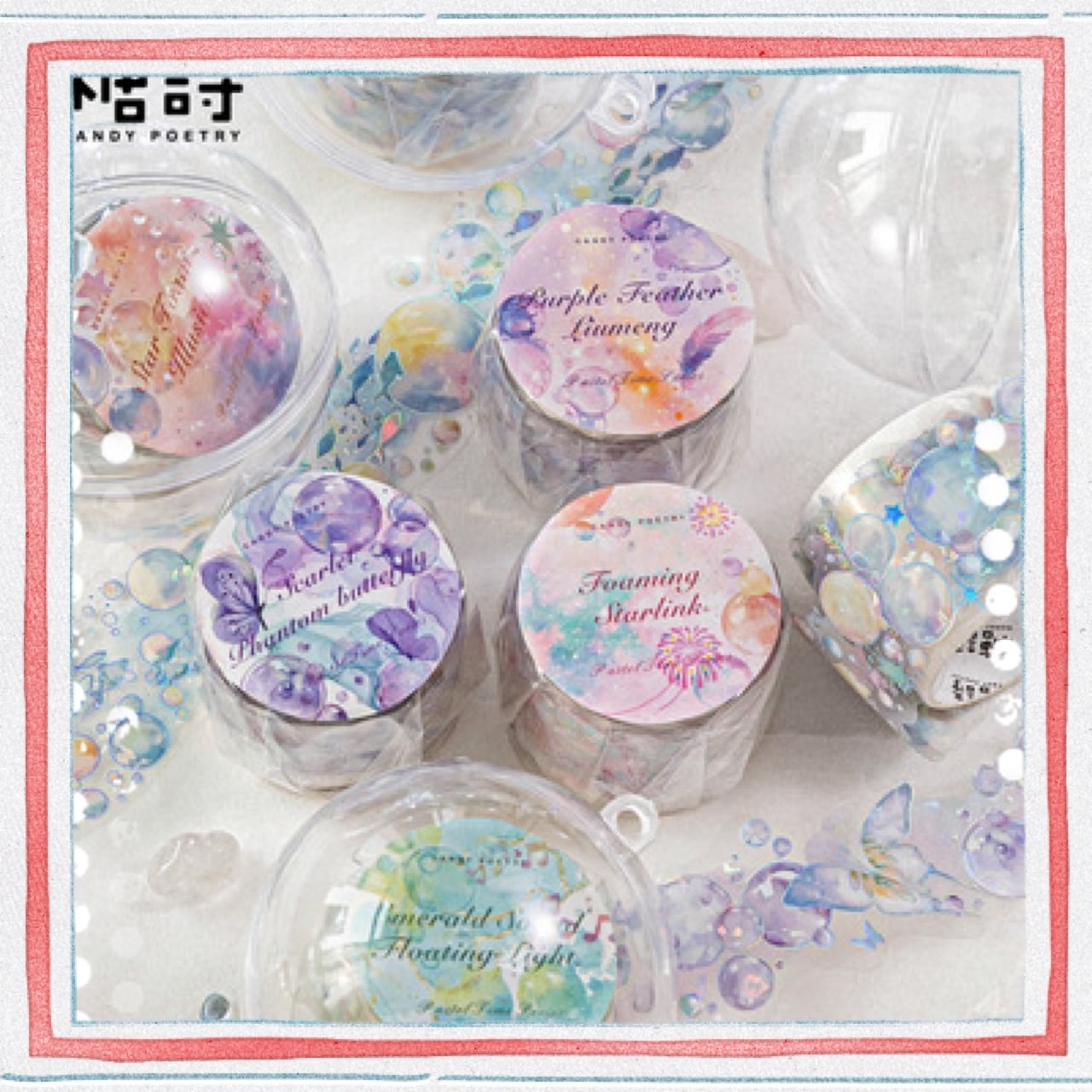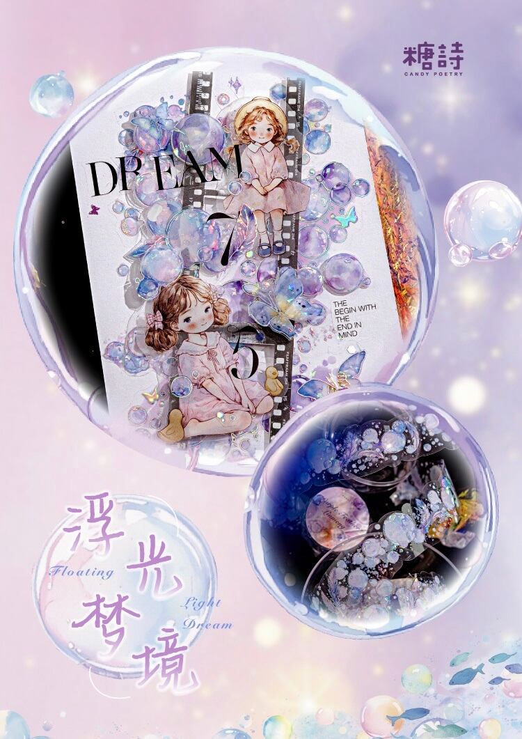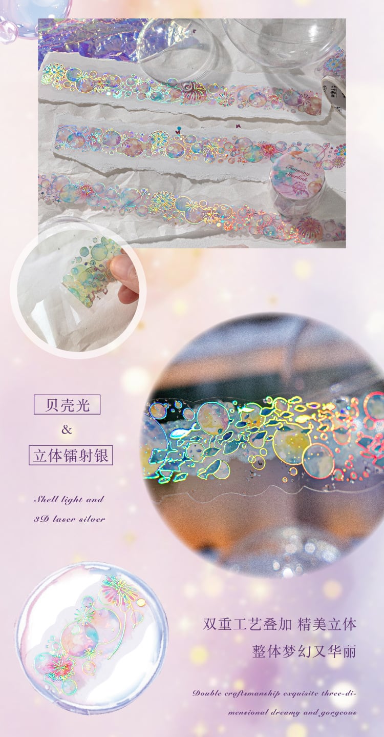 アイスクリスタル PET 3D レーザーシルバー 不規則形状テープ フローティングドリームシリーズ ジャーナリングベース素材用デザイン6種類