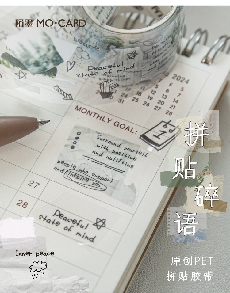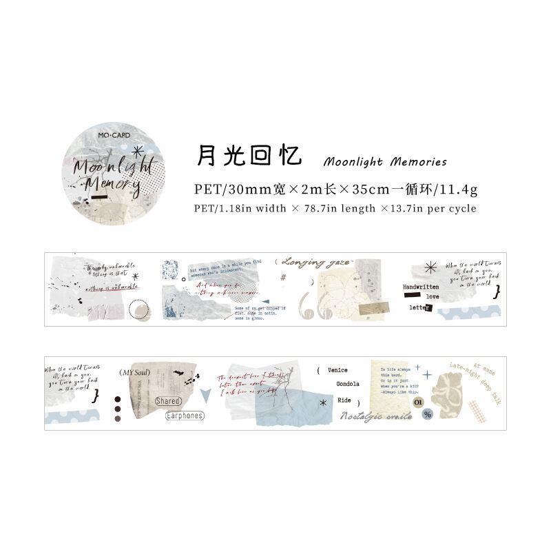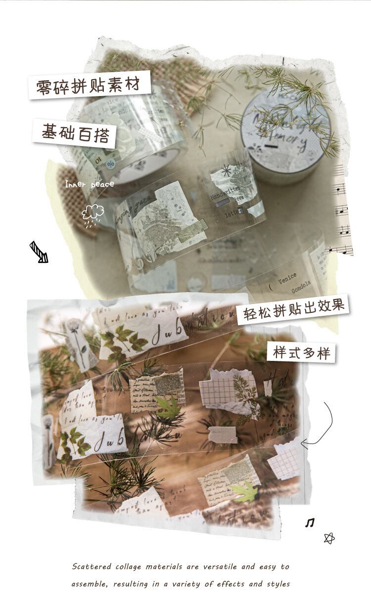 PETホワイトインクテープ - コラージュフラグメントシリーズ:日記や装飾に使える6種類のコラージュ素材デザイン