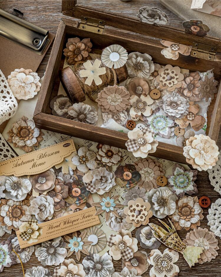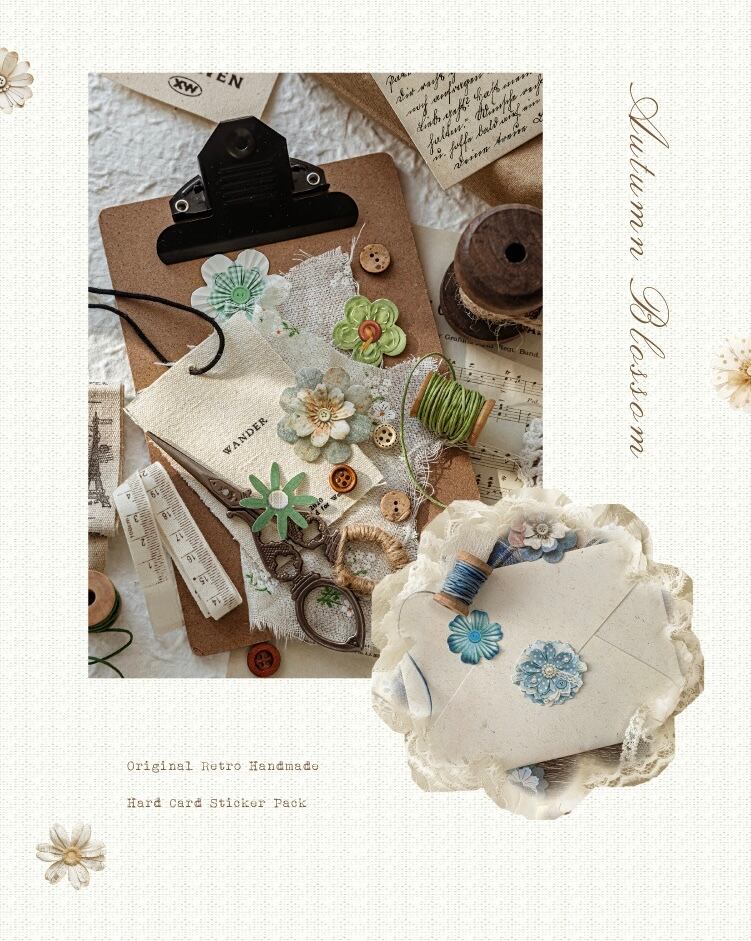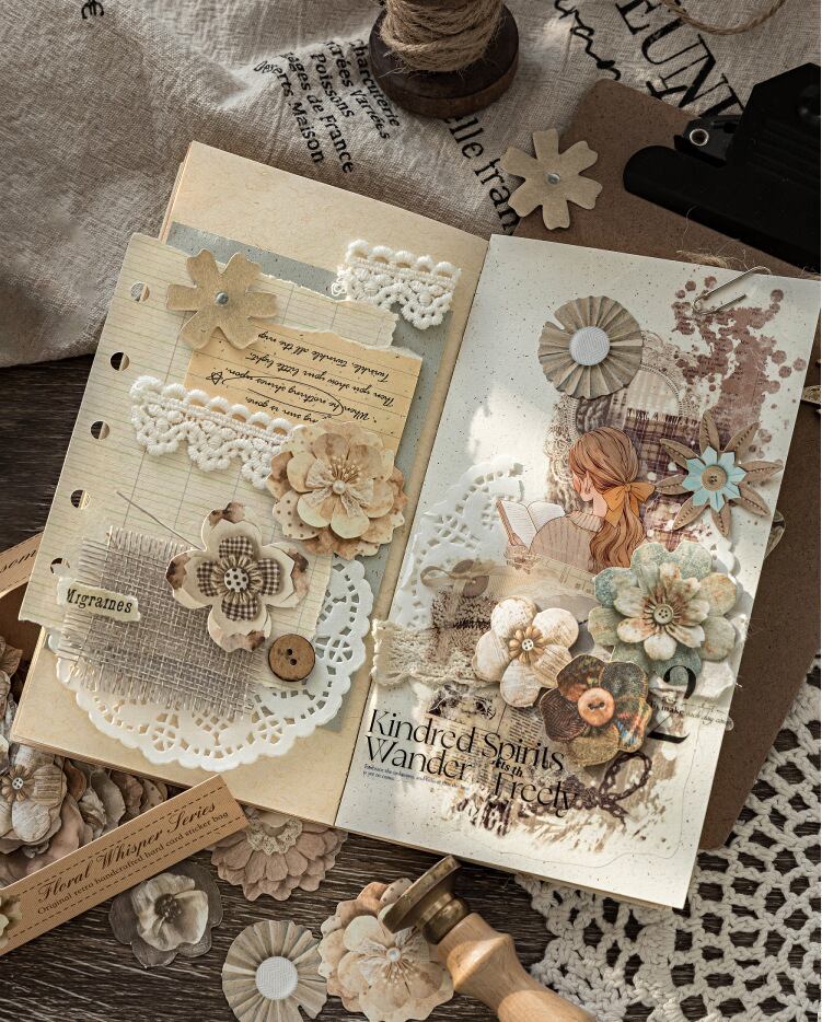 ホワイトクラフト紙 ハードカードステッカーパック フラワーカッティングシリーズ DIYデコレーションコラージュベース素材