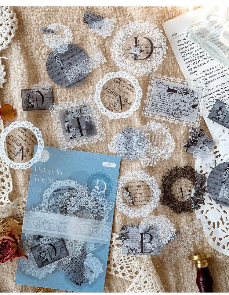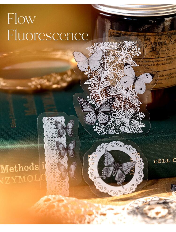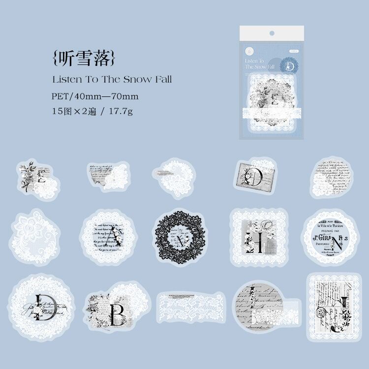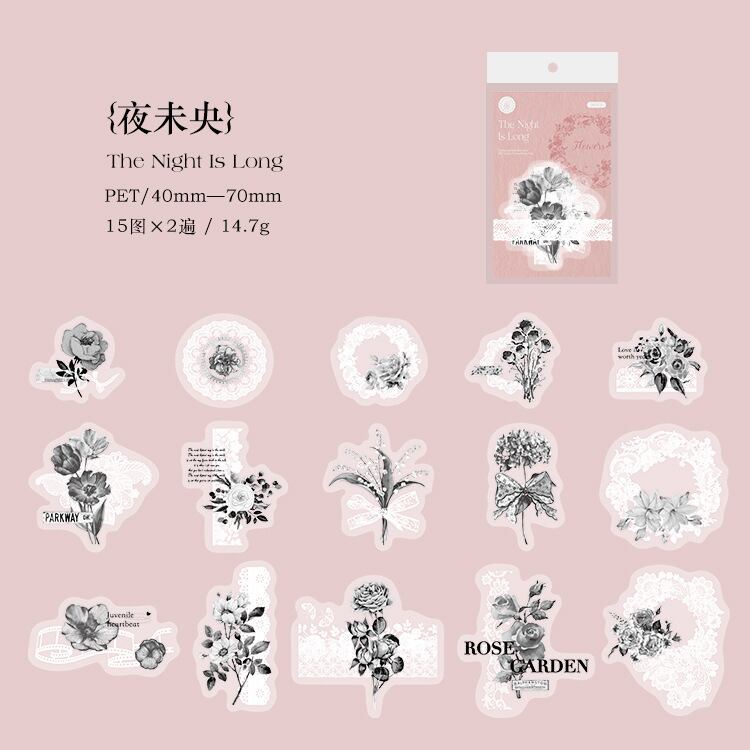 PET コラージュ レトロ ステッカー バッグ、インク アンド レイン シリーズ、ジャーナルの装飾とベース マテリアルに選べる 6 つのスタイル。