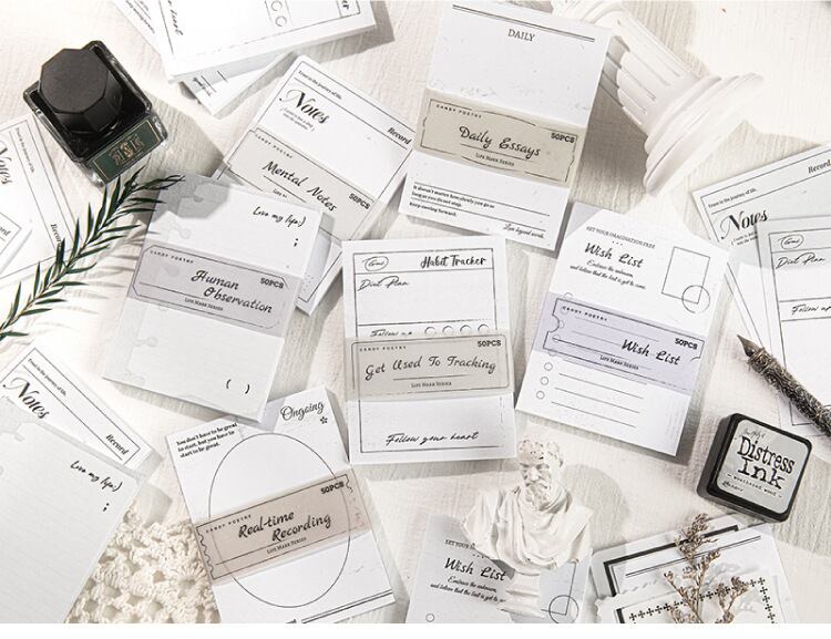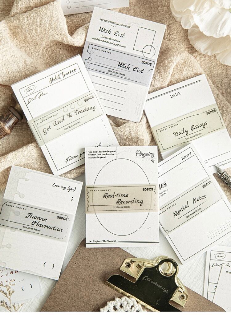 レトロホワイトクラフト紙ノート、ライフインプリントシリーズ、ベースコラージュライティングペーパー50枚