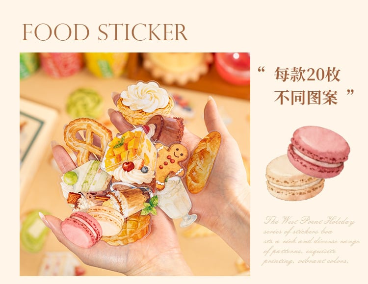 ホリデーシリーズ ペットステッカーパック: 食べ物テーマジャーナルデコレーションコラージュ、ステッカー20枚、デザイン4種類