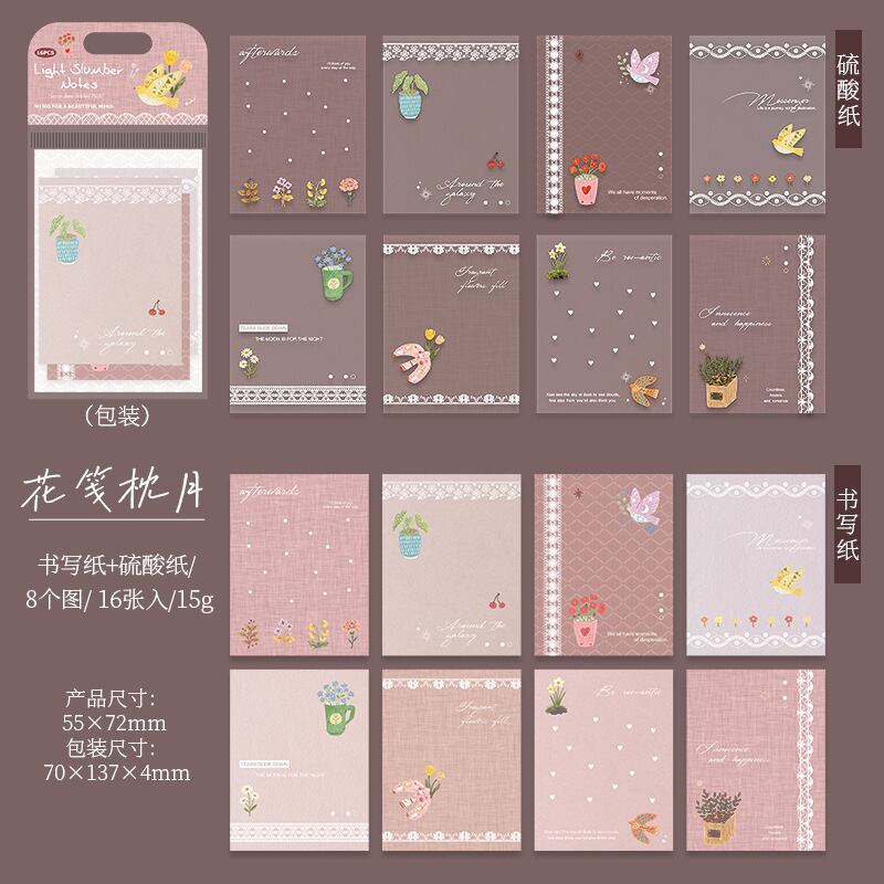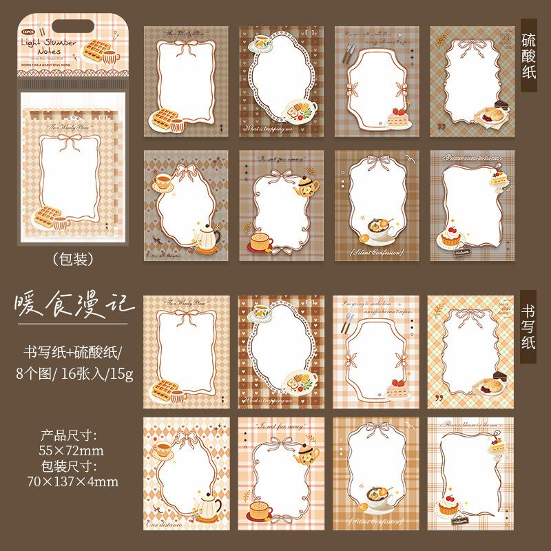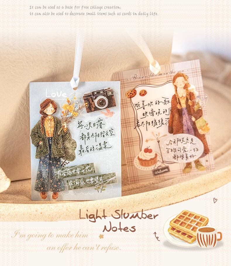 ガーリーステッカーパック - 軽い睡眠ノートシリーズ:癒しの手描き風コラージュPETパック(6デザイン)