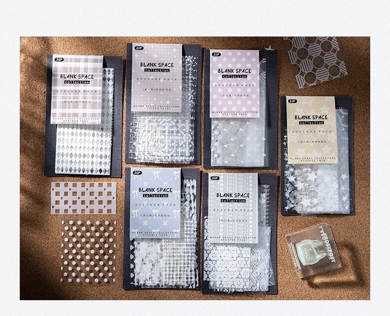 PET ステッカーパック - 空白スペースシリーズ: 基本パターン ジャーナリング素材 デコレーションコラージュ (6 デザイン)