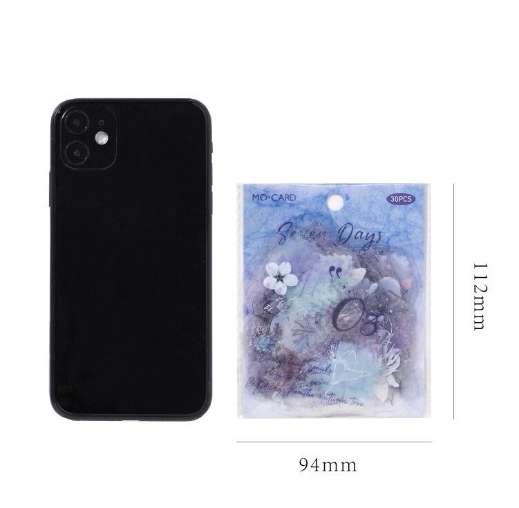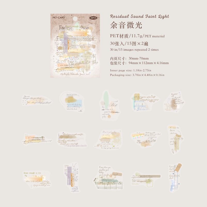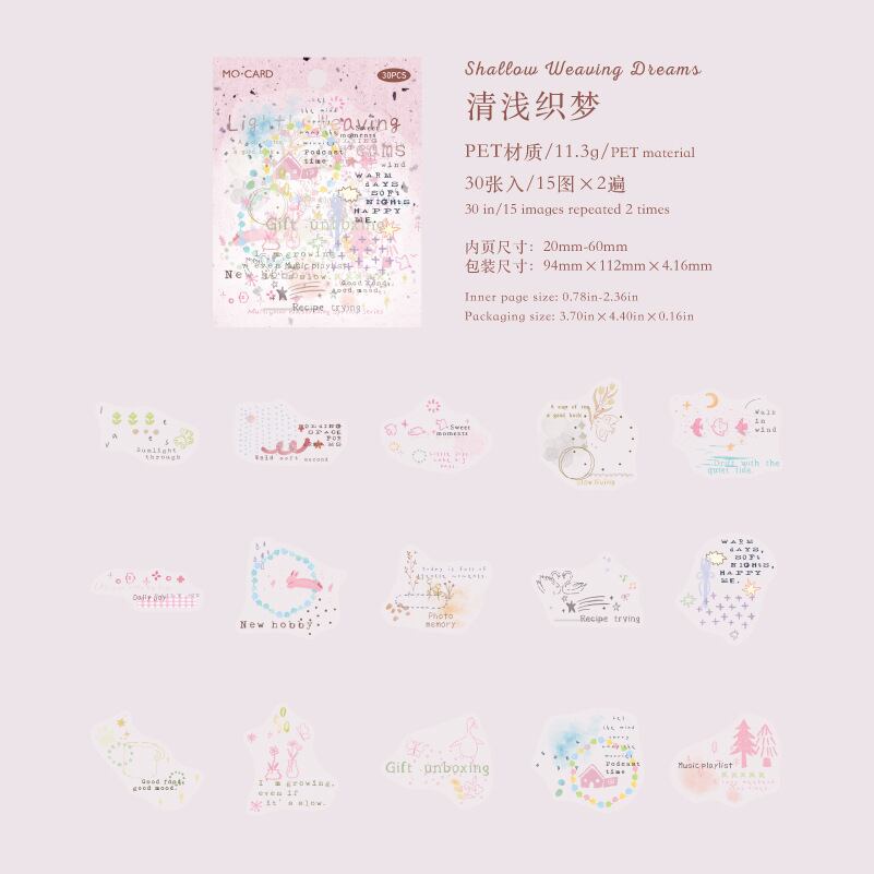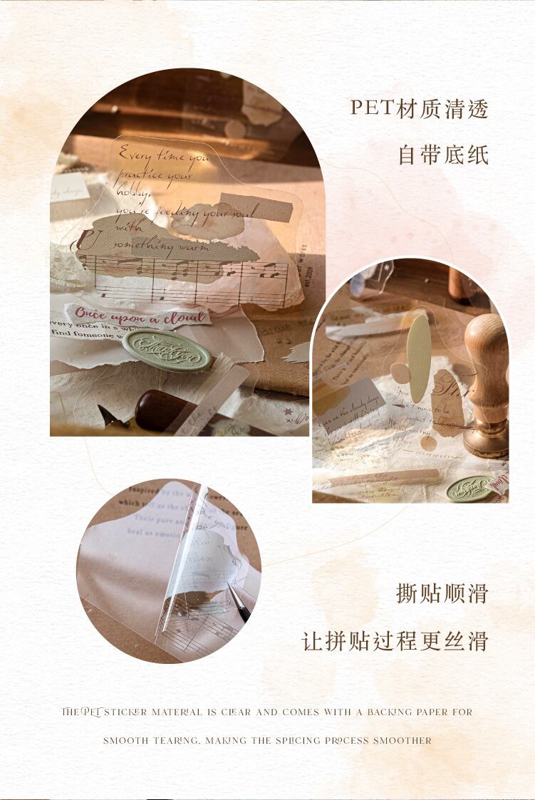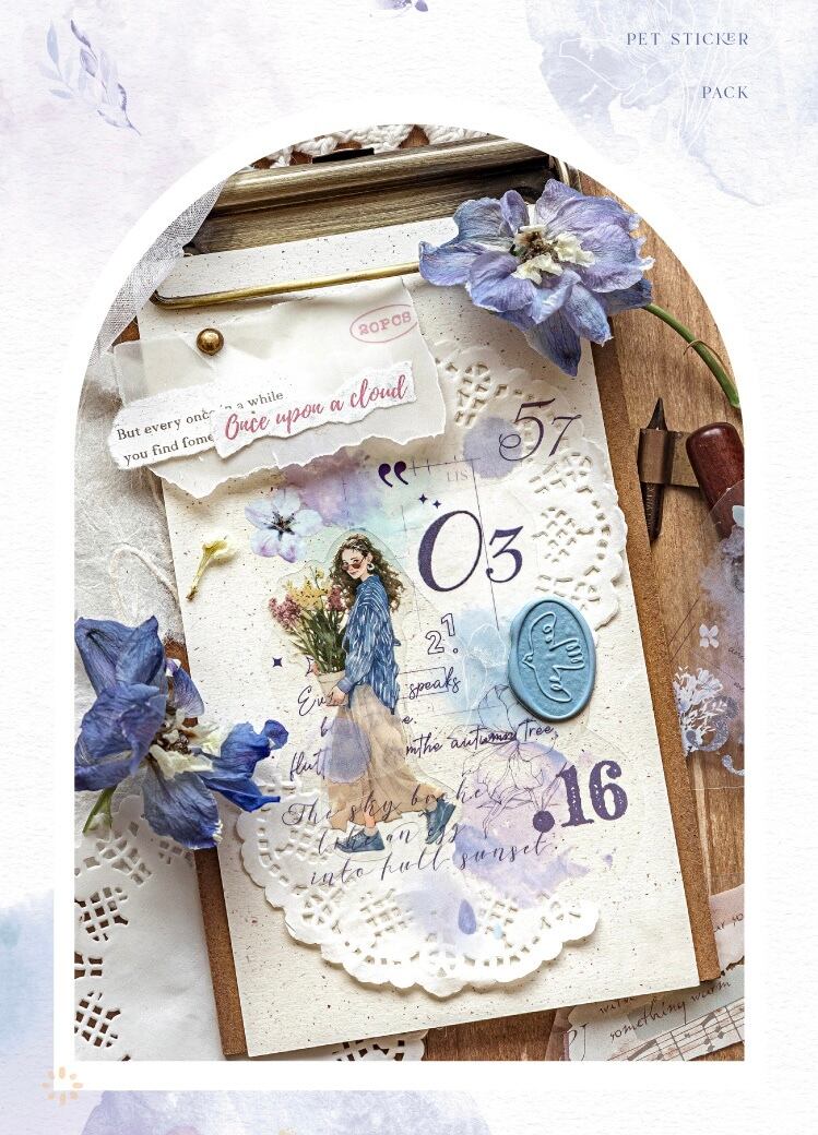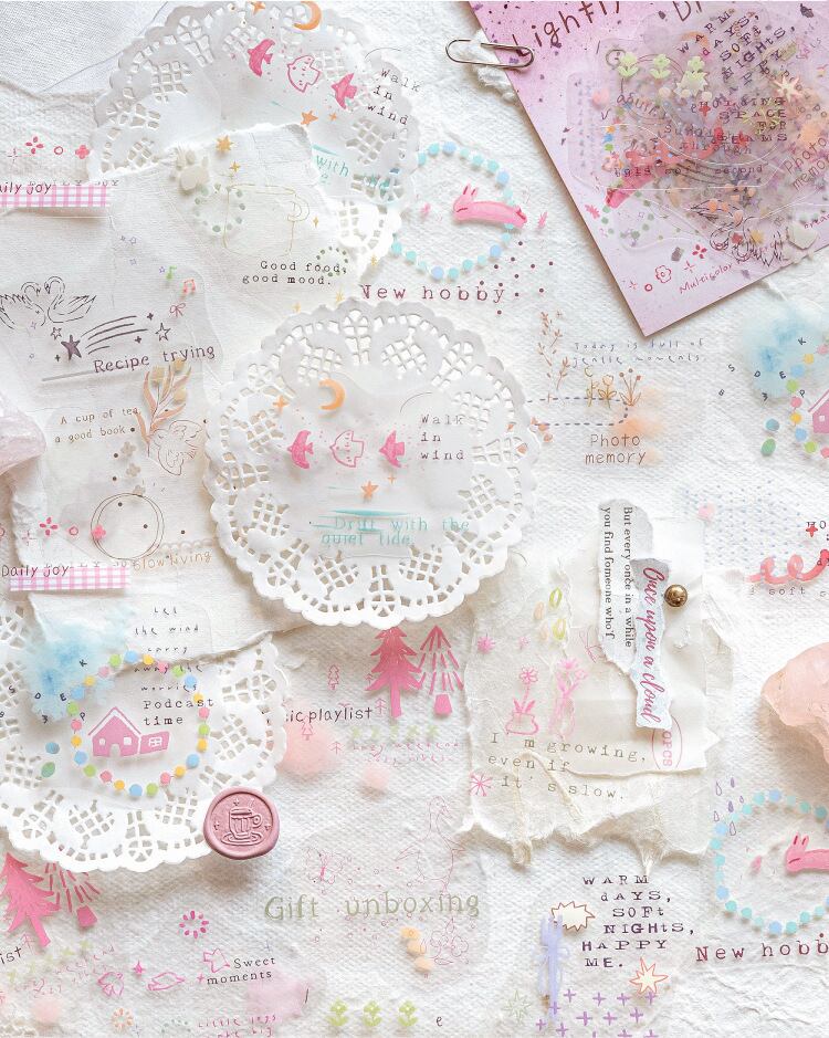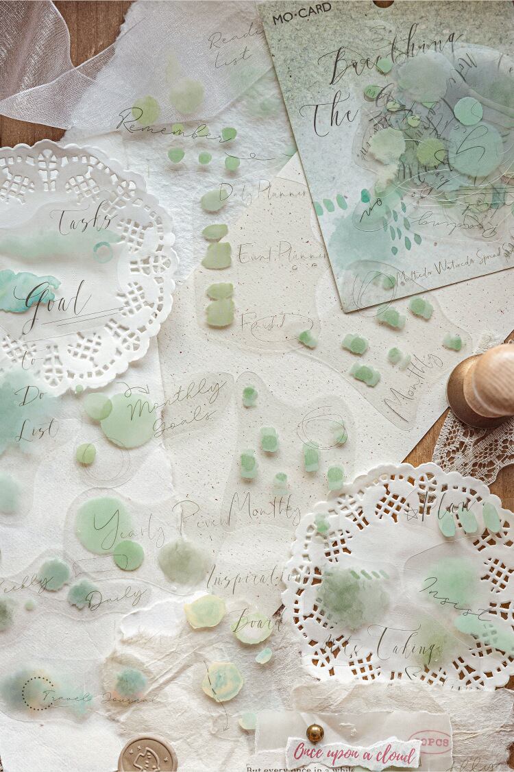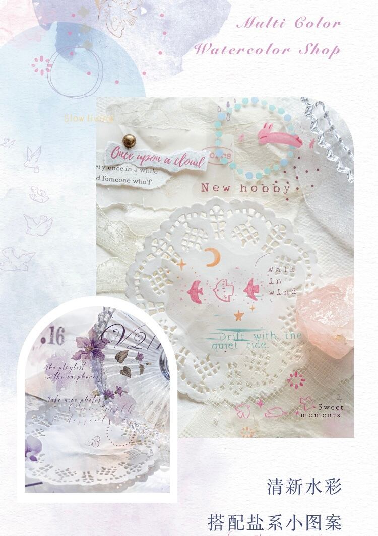 PETホワイトインクステッカーパック、マルチカラー水彩画シリーズ、水彩画装飾ジャーナルコラージュ(4デザイン)