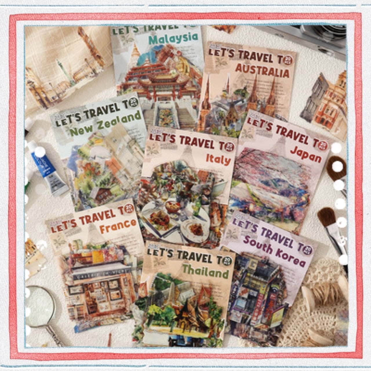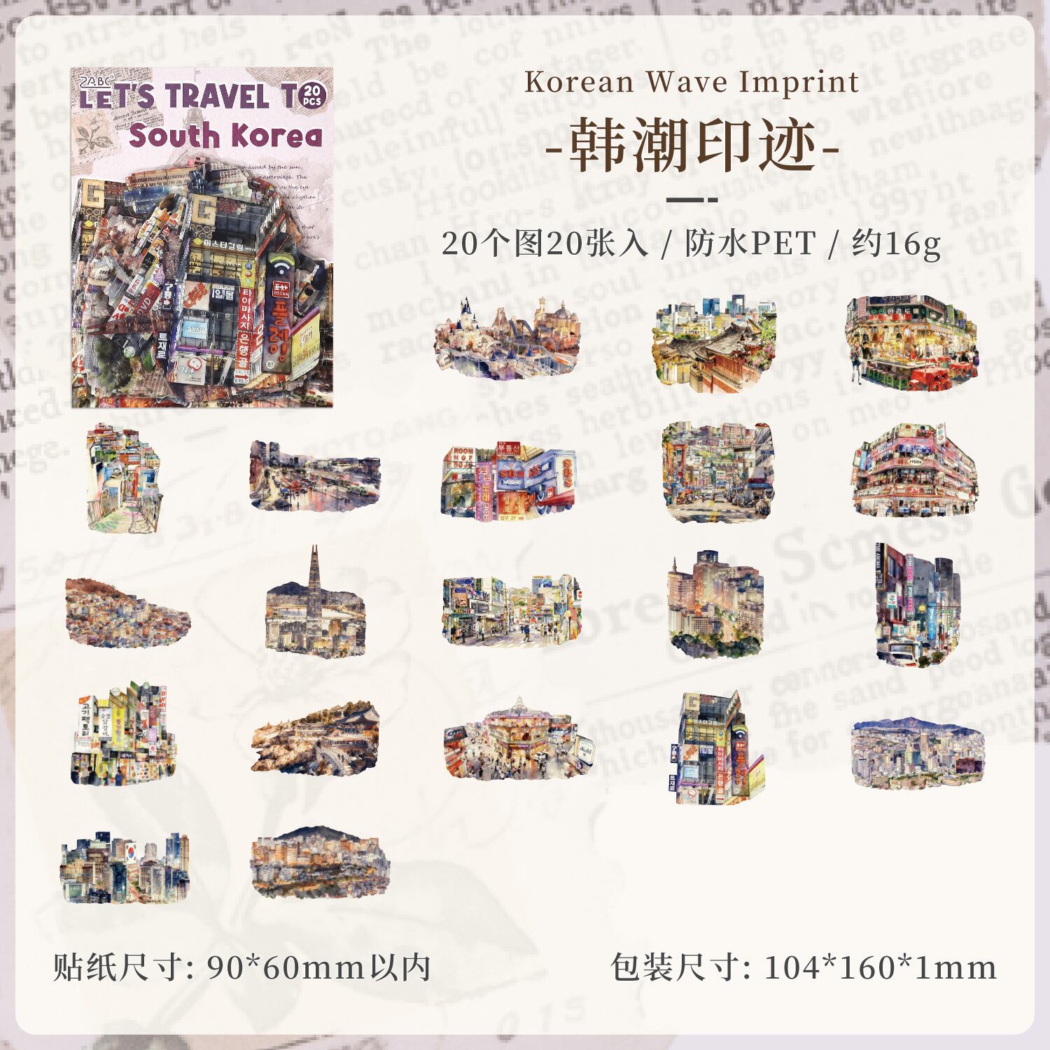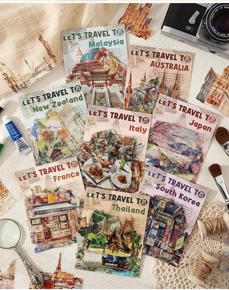 国境を越えたPETステッカーパック、旅行記シリーズ、8つのデザイン、20枚のステッカー、世界旅行をテーマにしたDIY素材